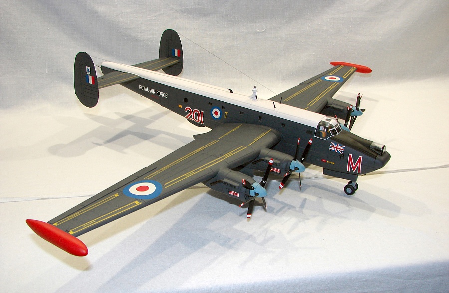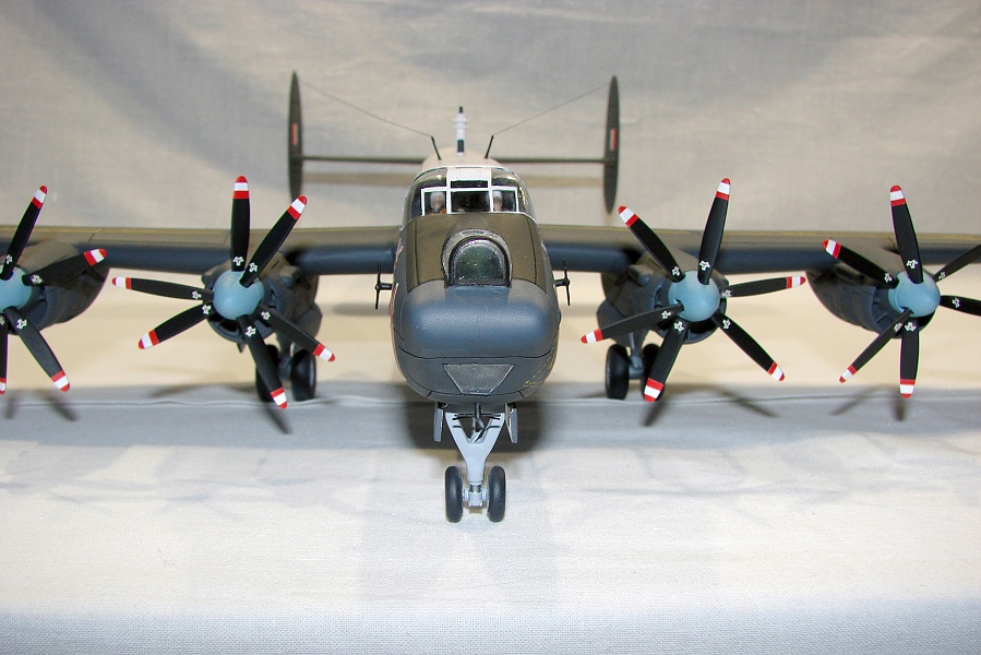 | Добрый вечер, Уважаемые товарищи по увлечению! Представляю Вашему вниманию модель самолета Авро Шеклтон мк.3. Авро Шеклтон – английский противолодочный самолет, созданный в 1949г на базе бомбардировщика Авро Линкольн. Первый полет совершил в марте 1949г. Несмотря на начало века реактивной авиации, Авро Шеклтон с поршневыми двигателями, оказался долгожителем, прослужив до 1990г. Этому способствовали надежная конструкция и специфические требования к противолодочной авиации, где не требуется большая скорость полета. За время эксплуатации самолет прошел несколько модернизаций, в основном в части радиоэлектронного оборудования. Тактико-технические характеристики Авро Шеклтон