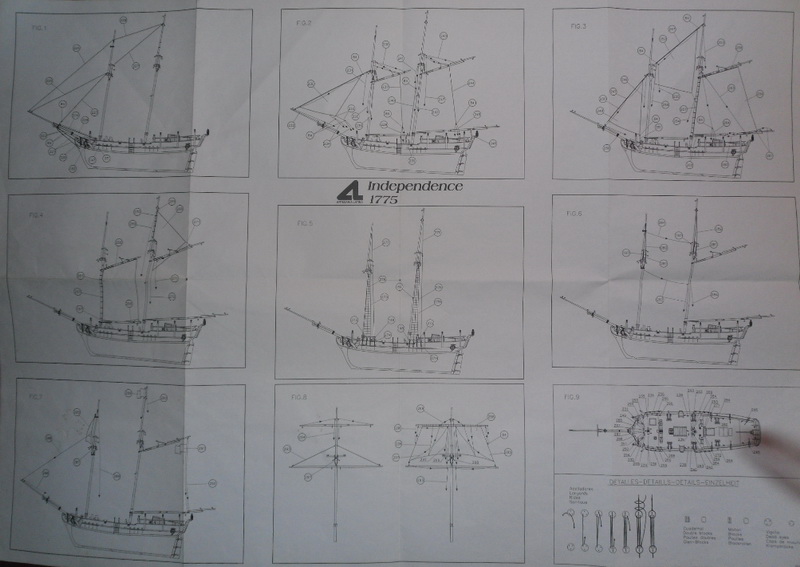 | Масштаб 1:35 Размеры: длина 754 мм(по корпусу 460 мм) ширина по корпусу 135 мм высота 605 мм Построенная в 1775 году, двухмачтовая шхуна Independence принимала участие в войне за независимость Америки. Модель содержит уже вырезанные деревянные детали, корпус имеет двойную обшивку из мягкой липы и благородного темного ореха. Для начинающих моделистов для упрощения сборки фальшборта сделаны единой полосой, что предотвращает появление неприятных щелей. Украшения модели состоят из литых боковых окон и транца с орнаментом, фонаря, регелей гальюна. Большой масштаб позволяет хорошо проработать палубу и показать там множество дельных вещей, таких как грузовые и световые люки, надстройки, лестницы, колокольню, помпы, утки,бочонок. Примером проработки является то, что брашпиль обшивается рейками ореха, это придает ему шестигранное сечение. Шхуна вооружена шестью орудиями и восемью фальконетами на вертлюгах. Весь рангоут выполнен из ореха, а блоки и юферсы из самшита. Для такелажа предусмотрены семь катушек и мотков нитей различного диаметра и цвета. Паруса уже вырезаны и обметаны. Инструкция имеет более чем 30 цветных фотографий и огромные листы с полно-размерными чертежами. цена 5600(примерно) От себя добавлю что набор поражает обилием материала.Заготовок не просто с запасом,а с большим запасом.Начнём с того что предусмотрены два типа обшивки как темным орехам так и красным деревом.Паруса в комплекте очень не плохи(конечно стоит перешить укрепляющий трос(ликтрос-чтобы не ругались знающие) на кромке паруса.Юферсы даны с запасом.Литьё на корму без нареканий но доработать его нельзя так как отлито оно из сплава алюминия с последующим анодированием под бронзу.Все мелкие детали находятся в двух великолепных коробочках которые послужат и при сборке других моделей.Деревянные накладки на якоря(штоки)выполнены лазерной резкой из темного ореха как впрочем и остальные мелкие детали(не какой фанеры).Инструкция выполнена в размер модели на 3 больших двухсторонних листах.Боковые детали(шёки) лафетов пушек выполнены лазерной резкой по темному ореху.Конечно если собирать по рекомендованной инструции получится мутант,а не орудие но как заготовка просто великолепны. Киль накладной из нескольких частей с правильными соединениями. Даже если придерживаться чертежей и собрать по рекомендованной схеме получится великолепная модель которая будет приятно удивлять не только ваших друзей но и людей искушённых в моделизме. Моя оценка 5+ соотношение цена набора качество просто изумительно. Из недостатков(коих не много)Все блоки одного размера,что не есть правильно.Не соответствующая всему остальному слишком простая корма(транец) и литье боковых окон.Кривые отливки якорей.Но не вздумайте их поправить они ломаются от малейшего изгиба.Совершенно дикие точёные заготовки под пушки(их можно легко доработать при желании).На мой взгляд тёмно коричневый немного не правильный цвет ниток(вант)под стоячий такелаж.Крепление для обтягивания мачты (вант-путенс-юферсов)предусмотрено нитками,а не металлическими деталями(вант-путенсы,путепс-планка).Но всё это ничто по сравнению с количеством материала. На сём прощаюсь удачи в моделировании.))) P.S.Данный набор взят мной как основа для создания модели шхуны 18 века.Кому интересно может посмотреть что из него выходит на моей страни