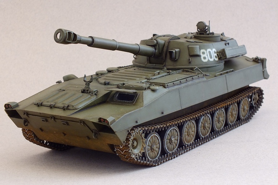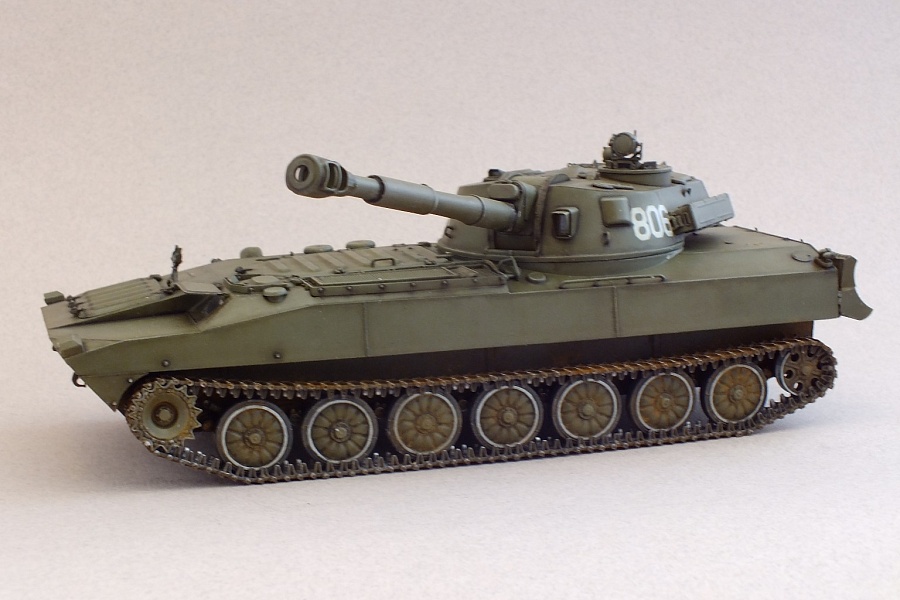 | Изкокробочная сборка. Несложная, недолгая сборка, кроме пайки травления. Заменил только траки на металлические Мастерклаб, полунаборные из набора не понравились.Окраска акрилом АКАН. "Тереть", "царапать" не стал, немного припылил ходовую. | |