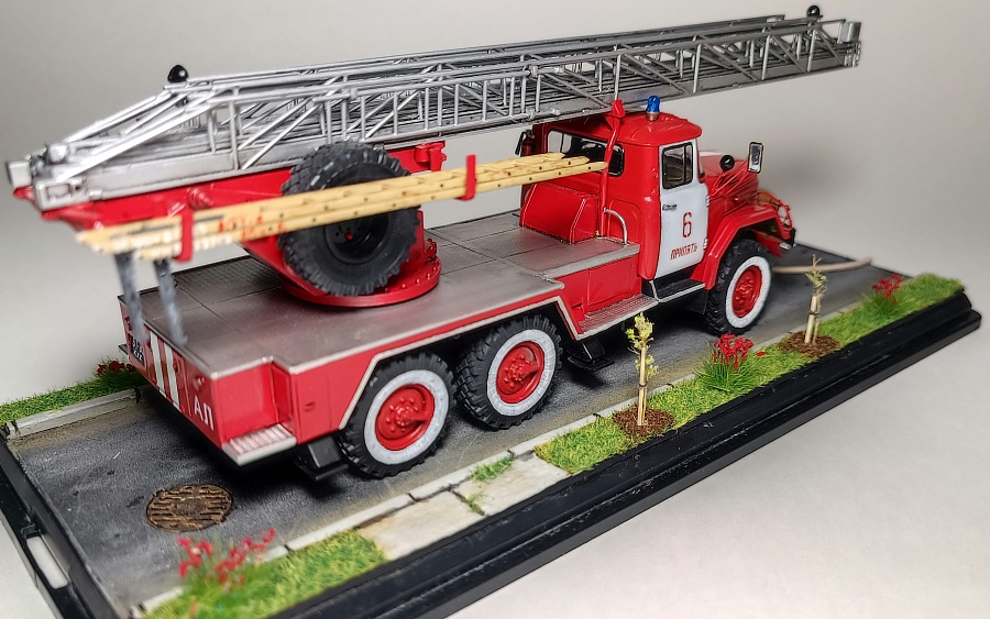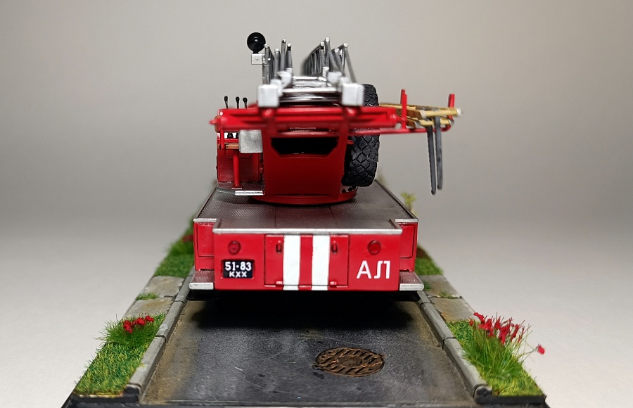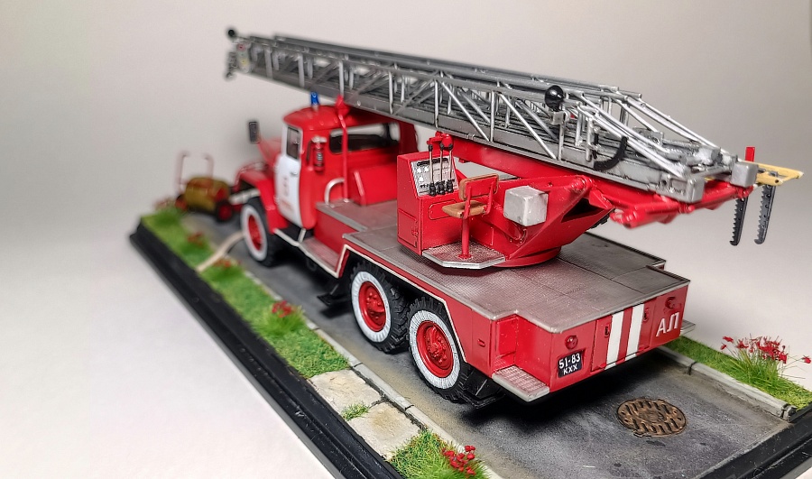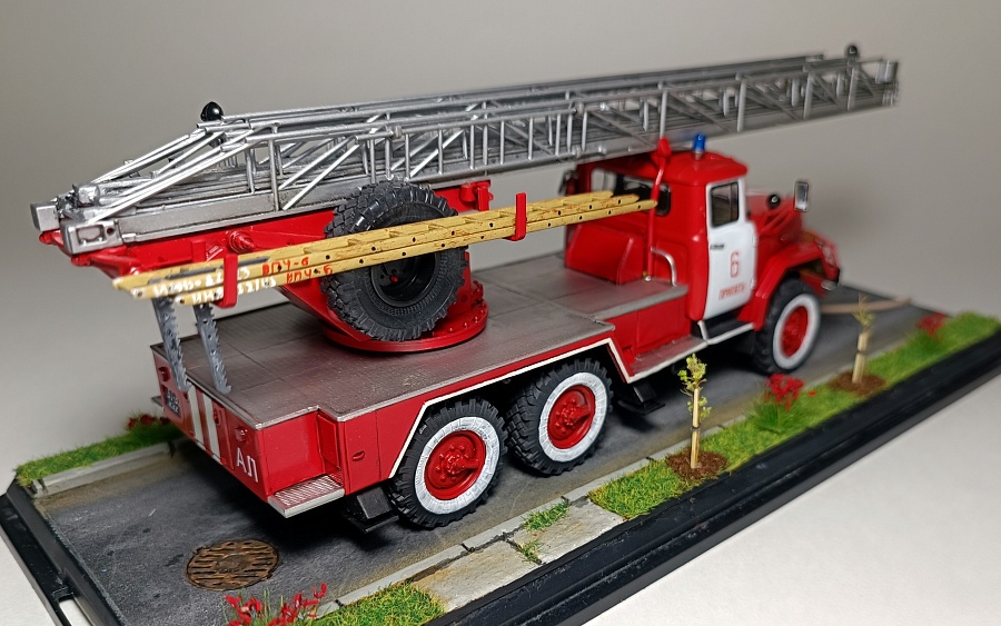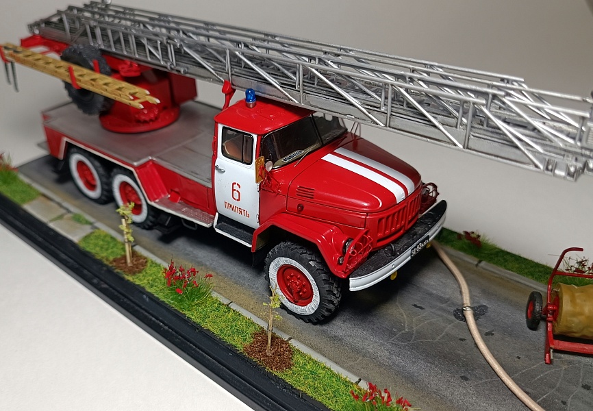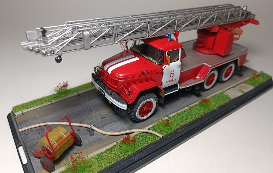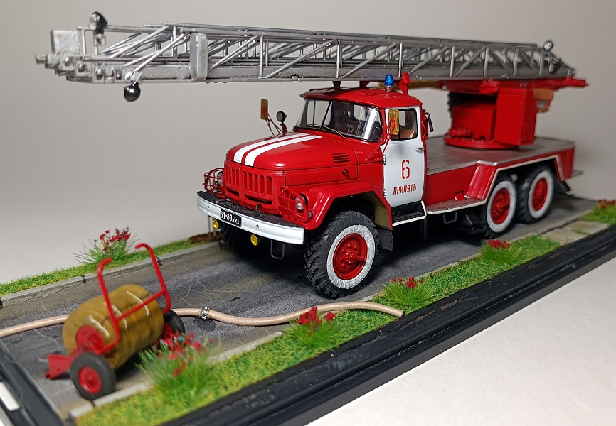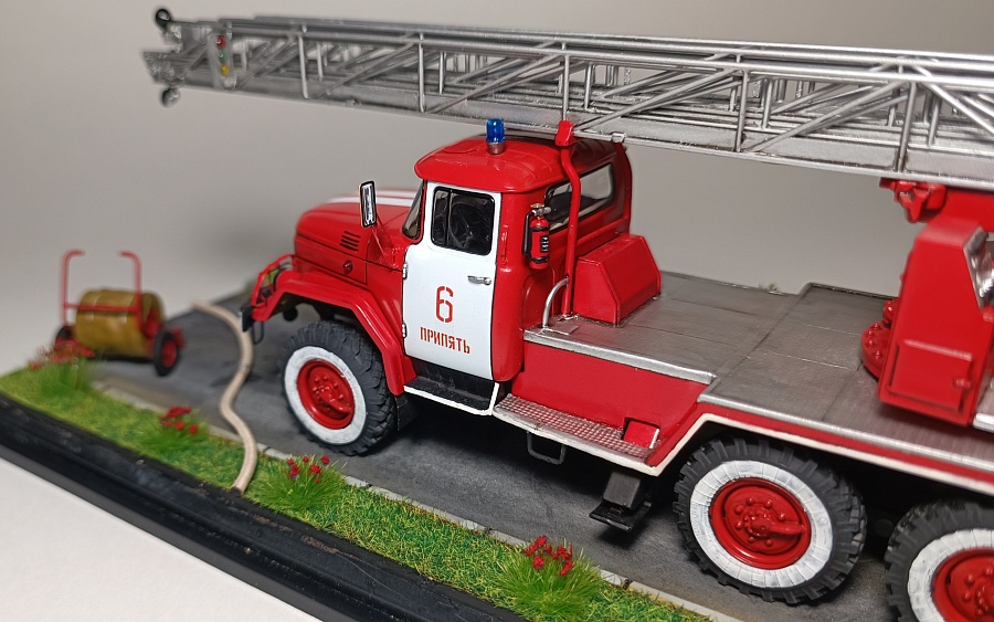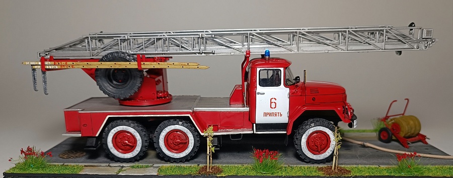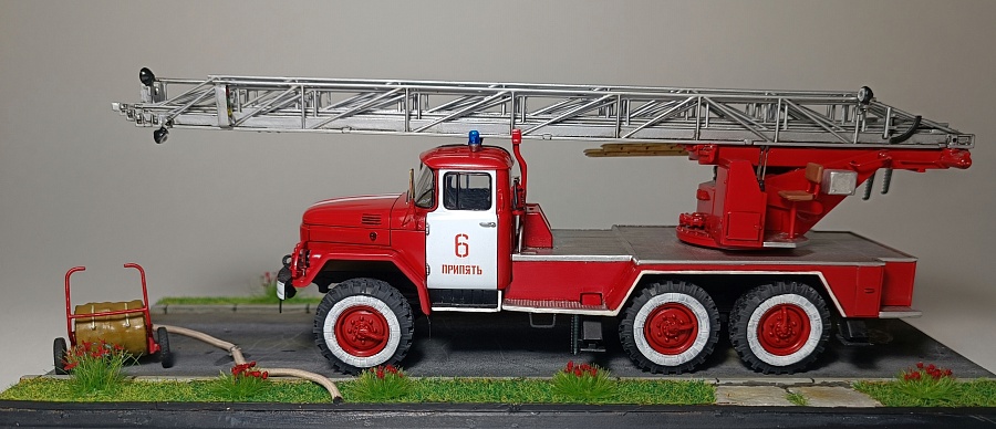 | Представляю Вашему вниманию модель на тематику Чернобыльских авто ликвидаторов. Данная модель является собирательным образом пожарной автолестницы Самостоятельной Военизированной Пожарной Части по охране г. Припять (СВПЧ-6) участвовавшей в ликвидации пожара на Чернобыльской АЭС ночью 26 апреля 1986 года . Автолестница находилась на северной стороне станций около стены 3-го энергоблока. Гос.номера и внешний вид был примерно собран из фотографий пожарных авто тех лет, т.к настоящих внятных фото и данных о машине нет. Известно лишь, что водителем-оператором машины был Михаил Федорович Крысько - сержант в/с, водитель СВПЧ-6. О модели: исходным материалом для конверсий послужил кит АВД АЛ-30 (131) ПМ506Д) плюс фототравление от ПетроградЪ. Окраска баллонами "Мотип". Исторические фото взяты с rcforumМодель обновлена 12.03.2023 года. Фото обновлены 30.03.2023г |