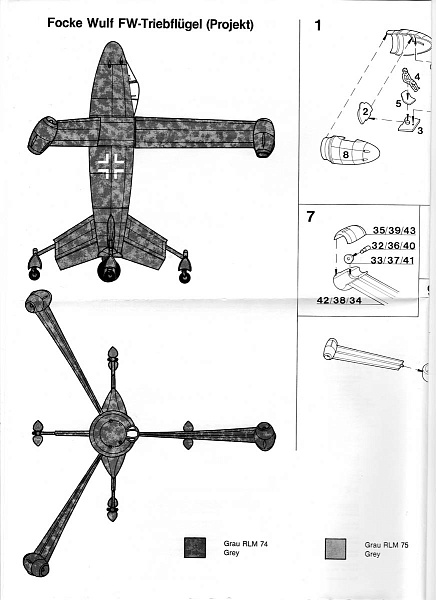 | В связи с новым поступлением моделей, а так же, что в честь праздника решил дать отдохнуть жене от моего моделестроения, решил выложить пару-тройку обзоров. В данном случае модель из серии Luft'46 перехватчика вертикального взлета и посадки, работавшим на прямоточном воздушно-реактивном двигателе. Насколько я знаю, далее обдувки модели в аэродинамической трубе дело не пошло. Уже не выпускающеяся модель не существующей фирмы Huma. Однако, хоть и достаточно простая (если верить коробке, 44 детали), но весьма качественно выполненная. Присутствует небольшой облой, расшивка внутренняя, достаточно аккуратная. Фонарь вроде неплохой. Инструкция вполне понятная, с неплохим описанием прототипа прототипа :) Декаль достаточно простенькая, но в принципе, что там особо можно было сделать, если самого самолёта не существовало. В общем, весьма неплохой набор очень экстравагантного самолёта :) |