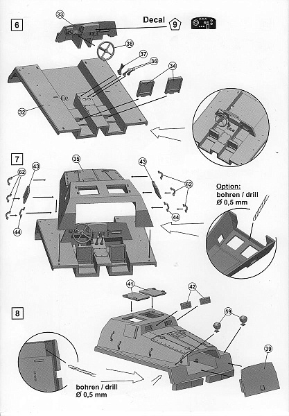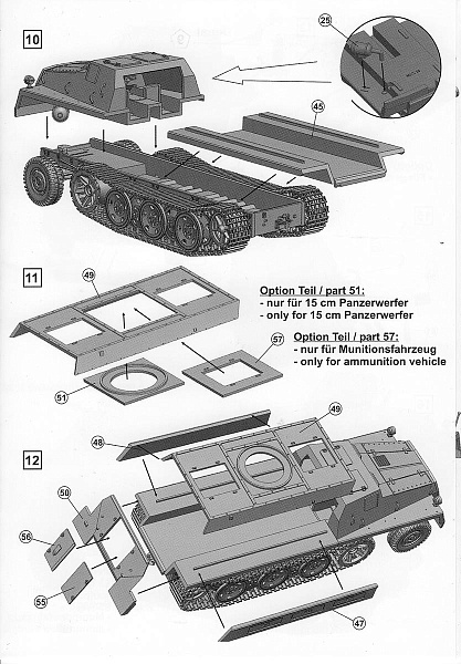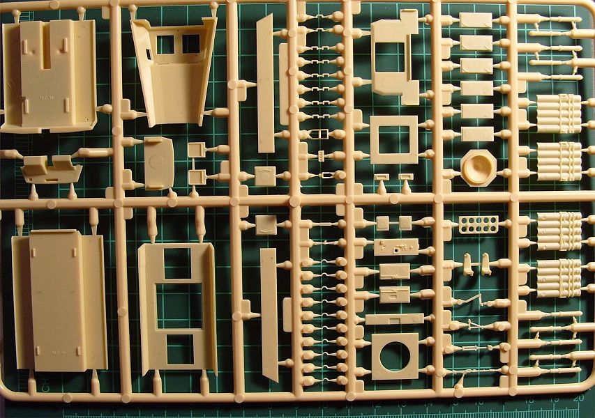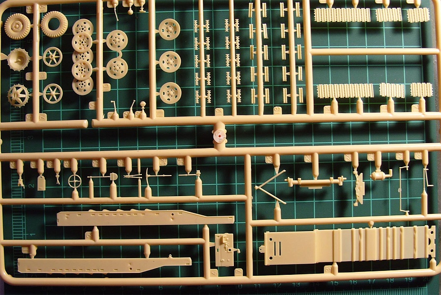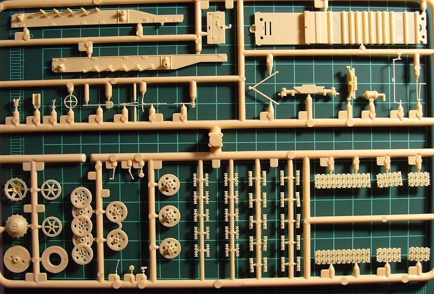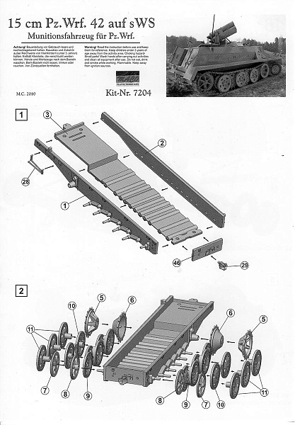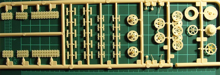 | Самоходная пусковая установка 15-cm Panzerwerfer 42 Auf Sf (PzWrf 42). Вариант самоходной ракетной системы залпового огня выпускался на базе sWS - gerät 71 изг-ся "Бюссинг -НАГ" и "Рингхоффер-Татра" с 12.1943 по 03.1945 всего 826 машин Б.масса - 13.5 т Длина 6,92м Ширина 2,5м Высота 2,07м Скорость 28 км/ч Запас хода 300км БК - 50 ракет и 2000 патронов к МГ дв-ль "Майбах" HL42TKRMS 100k/c Броня - от 6-8 до 45 мм Качественный набор, позволяющий собрать 2 варианта: собственно реактивный миномет и подвозчик боеприпасов для него. Литьё очень тонкое, траки пластиковые с качественной проработкой. Инструкция достаточно подробная. Сама модель получится достаточно большой, заявляют о длине в 10 см. Судя по декалям, вариантов достаточно много, в том числе и трофейный американский. Но вот схема окраски только одна, и та дана на обратной стороне коробки. Покупал в Польше примерно за $ 14,45 USD UPD: Вот собранный http://karopka.ru/community/user/12243/?MODEL=324093 |
