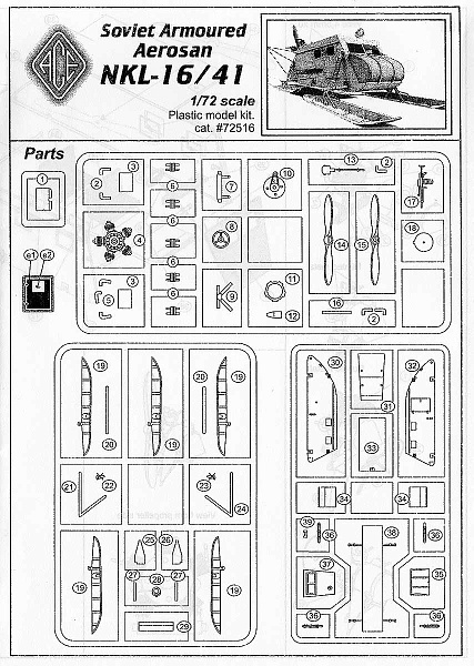 | НКЛ-16/41 - советские аэросани времён Великой Отечественной Войны. Применялись в транспортном и санитарном вариантах, а так же для буксировки лыжников (до 18-20 человек), а так же волокуш с пулемётом. Типичное "Асешное" ЛНД. На литниках смотрится достаточно неплохо, но вот в стыкуемости есть большие сомнения. Литьё слегка замылено, есть небольшой облой. Дана маленькая плата травления с дверями и ручкой. Инструкция достаточно понятная, маркировка дана на 2 машины. Правда, рисунок на коробке отличается от схемы окраски в инструкции. Декаль вызывает большие сомнения по качеству, буду покрывать лаком перед нанесением. Обошлась из Польши примерно в $10,43 USD |