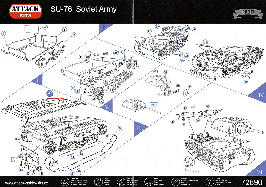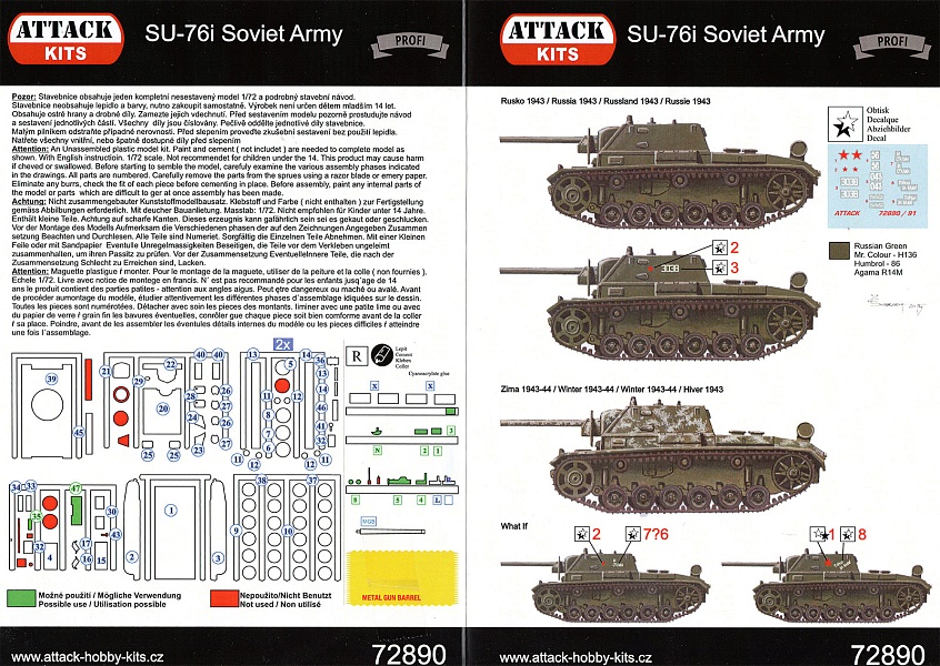 | СУ-76и — средняя по массе советская самоходно-артиллерийская установка (САУ) класса штурмовых орудий на базе захваченных Красной Армией немецких танков Pz Kpfw III и САУ StuG III. Более подробно можно посмотреть тут http://www.aviarmor.net/tww2/tanks/ussr/su-76i.htm Относительно новое ЛНД от Attack. Мне усиленно его советовали, говорили, что Attack стала гораздо лучше, чем было, но как-то особого прогресса не увидел (вот ещё и на их форуме втык получу :) ). Типичное для них членение, на маленьких литниках, есть немного облоя, но вроде некритично, заметил и пару-тройку утяжин. Шанец дан вместе с корпусом, причём удалить его будет трудновато. Опять же, в их фирменном стиле, плоская часть гусениц дана в пластике, а передняя и задняя - в смоле, уже в изогнутом виде. Правда, если ранее я обычно встречал, что можно было сделать по желанию, использовать смолу или самому гнуть пластик, то тут такой фокус не пройдёт - пластиковых частей просто по длине не хватит. Кроме частей гусениц, в смоле дана ещё и часть мелочёвки, отлита вроде более-менее. А вот на смоляных гусеницах есть облой, причём внутри, да и форма краёв как-то смущает... Так же якобы в качестве бонуса (хотя в пластике замены нет :) ) дан точёный ствол (кстати, если что - не пугаемся, он лежит не вместе с деталями, а незаметно так приклеен к инструкции), ну про него сказать ничего не могу - ствол как ствол. Инструкция простенькая, маркировка на 5 машин. В общем, особых отличий от предыдущих наборов Attack (ну, кроме коробки, инструкции и ствола) я не заметил. На литниках смотрится более-менее, как и другие, но вот как пойдёт в сборке... Боюсь, набор... ну скажем политкорректно, "не для начинающих" :) Из альтернатив слышал про Military Wheels, гораздо более раннее ЛНД, но ничего сказать не могу, в руках не держал. Обошлось из Польши примерно в $14,57 USD | |