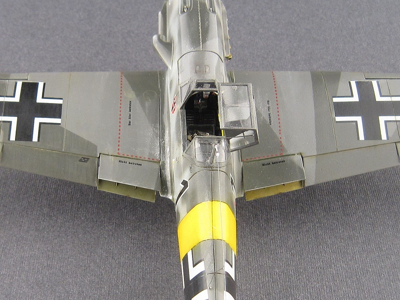 Красиво выполнена модель. Про излишний блеск кока и лопастей винта уже обсудили. Немного смущает положение створк радиаторов. Нашел, что для Bf 109G-2 створки могут находиться в трех положениях: