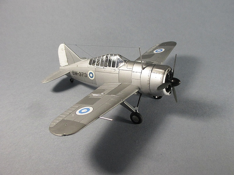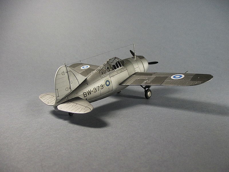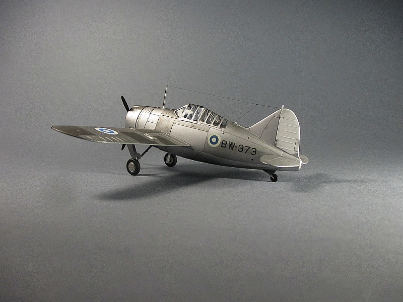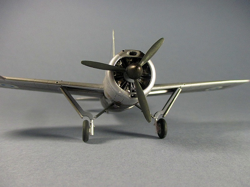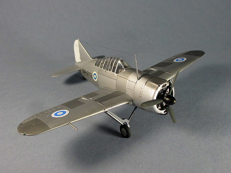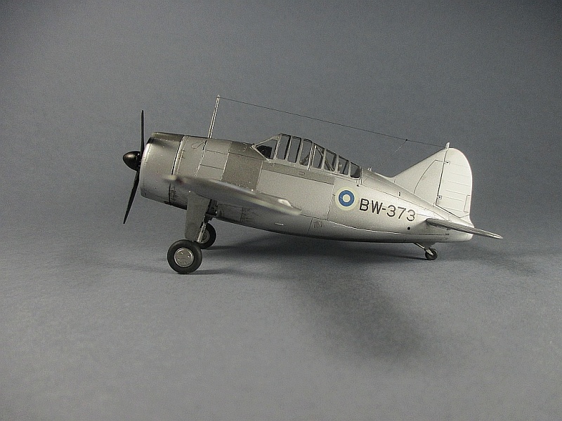 | Уважаемые коллеги, приветствую! Ещё один финский "брюстер". Теперь на завершающем этапе своей карьеры в ВВС Финляндии. Пластик - Hаsegawa. От себя - бано, антенна. Попытался в этот раз воспроизвести каналы воздухозаборников капота, на модели там просто "сквозные" отверстия (на оставшихся моделях этим заниматься наверное не буду, оставлю как есть). Пулемёты в крылья "не ставил" - финны на технике для "экономии" демонтировали часть вооружения. Правда фото послевоенных "брюстеров" не очень чёткие, но у меня сложилось впечатление, что крыльевые пулемёты не только демонтированы, но даже порты заделаны.Окраска - основа Ганза "8". Декаль - InScale72. Прототип - Brewster б/н BW-373 из состава Esik.Ltue., лето 1948 г., Пори. |