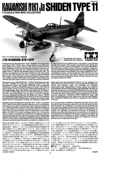 Kawanishi N1K1-Ja SHIDEN (type 11),1.72, TAMIYA