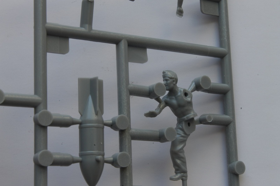 | Наконец-то уважаемая фирма снизошла до нужд диорамщиков в 72-м масштабе и выпустила фигурки аэродромных техников Люфтваффе (а также и ВВС РККА, на подходе - британцы). Набор на самом деле предназначен для настольных стратегических игр серии "Великая Отечественная", но мы его ценим не за это, а за возможность разнообразить диорамы аэродромов. Причем материал использован - ПОЛИСТИРОЛ, который можно легко обрабатывать и клеить обычным клеем. Да и красится он существенно лучше того капрона, что использовался ранее при изготовлении фигурок в других наборах. В коробке лежат две рамки, запечатанные в пакетик и инструкция. В наборе дается 5 бойцов наземного персонала, тележка-подъемник авиабомб, дежурная бочка (куда без нее?), канистры и инструментальный ящик. Есть еще игровой флаг (?) и три подставки под фигурки. Бойцы даны в рабочих позах- видно из инструкции - в каких именно, при этом отдельные руки - ноги фигурок позволяют несколько отступить от предложенного производителем сценария занятия бойцов. Два техника одеты в майки, а при некоторой работе наждачной их можно вообще легко оголить по пояс, - все это дает дополнительные варианты использования набора. Качество литья хорошее, утяжин и облоя нет. следов толкателей тоже. Жалко, что фигуры недостаточно разчленены для максимально детального литья (делалось для сборки без клея). Из-за расположения фигур на литнике в профиль, несколько замылились детали одежды на груди (отвороты, воротники, лацканы, пуговицы). Придется восстанавливать вручную. Лица шикарные, портретно различаются. Трех бойцов заснял подробно в качестве примера. Подъемник авиабомб дан упрощенно, но доработать можно до хорошего уровня. Аналогично канистры и бочка. Цена всего 105 рублей. Купил и рад, как слон. Есть где развернуться. |