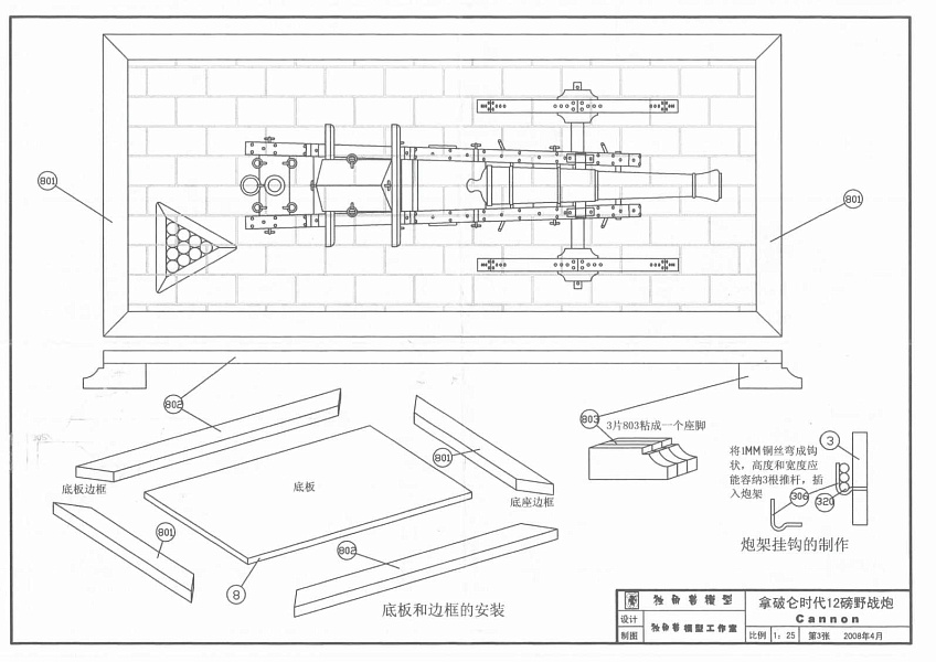 | Размеры: ширина 191мм, длина 82мм, ширина 80мм. Длина ствола: 101 мм. Диаметр ствола: 12-16 мм. Масштаб: 1/20 Цена 1500 Приобрести можно на: http://modelshipyard.ru/product/-field-gun-of-the-napoleonic-era/ Историческая справка: Почти все полевые пушки 17 - 19 веков в Европе имели стандартный калибр - 12 фунтов по чугунному ядру, или 120 миллиметров. Гладкоствольные бронзовые орудия, заряжались с дула, устанавливались на деревянных лафетах, оборудованных примитивным подъемным механизмом. Ствол имел длину 12 - 18 калибров, а вся система весила в 250 -350 раз больше снаряда, то есть около 1500 кг. Начальная скорость снаряда достигала 400 м/с, а максимальная дальность - 2700 м.. Фактически, однако, возвышение ствола ограничивало дальность стрельбы дистанцией 800 - 1000 м. Стрельба на большие расстояния не практиковалась, так как рикошеты были возможны только при стрельбе на треть максимальной дистанции. Стрельба картечью из полевых орудий велась на дистанцию до 400-500 метров. Пушка делала, как и хороший мушкетер 1 - 1.5 выстрела в минуту, а картечь со 150 -200 метров могла пробивать кирасы. Количество человек, обслуживающих пушку, зависело от калибра орудия: для 12-ти фунтовой полагалось восемь канониров и семь пехотинцев Количество полевых орудий на 10 000 пехоты и конницы в 17 , начале 19 веков составляло 10 - 60 штук, причем постепенно сокращалось. Число стволов заменялось маневром на поле боя. О наборе: Набор помещен в плотную картонную коробку и состоит из точенного латунного ствола, элементов лафета и зарядного ящика, вырезанных лазером. Для оформления колес используются накладки из шпона, травленные латунные обода и гвозди. Металлические ядра и цепи призваны оживить модель. Инструкция на четырех листах не содержит описательной части, и состоит из чертежей орудия и картинок, изображающих этапы сборки. Все элементы пронумерованы, что позволит избежать затруднений при сборке даже начинающим моделистом. В набор также входят элементы для изготовления основания размером: 250 мм. х 120 мм. х 15 мм. Трудно определить национальную принадлежность данного орудия. Форма ствола наводит на мысль, что, это скорее всего собирательный образ. Но не смотря на это думаю набор обязательно доставит удовольствие от работы. А сочетание металла и дерева позволит создать зрелищную модель, которая может стать замечательным подарком (например для неискушенного в истории артиллерии шефа) , и украсит собой как интерьер квартиры, так и рабочий кабинет. Приятно Вам провести время! |