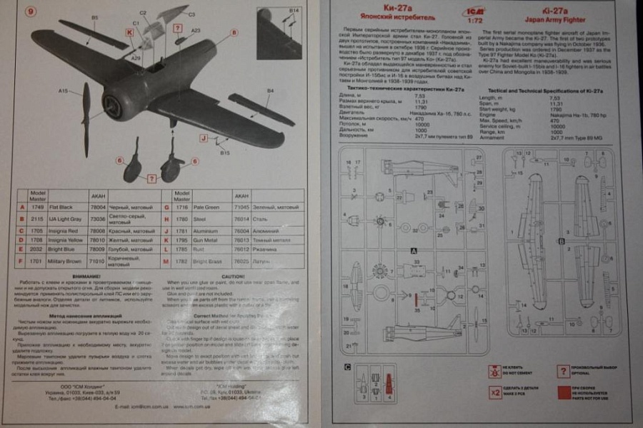 | Здравствуйте и снова Я! Коробка содержит два вертикальных литника хорошо формовавшей серой пластмассы, свежий вертикальный литник ясных частей, переводных картинок для четырех схем и ряда инструкций. Схемы в коробке - 1) 1-ый Sentai, Командующий Тосио Като, июнь 1939; 2) 84-ый Dokuritsu Tutai, Китай, 1939; 3) 10-ый Tutai, Китай, апрель 1940; и 4) 59-ый Sentai, 2-ой Tutai, Nomonhan, июнь 1939. Переводные картинки выглядят хорошими на листе и не имеют никаких очевидных недостатков или проблем. Инструкции представлены в новой манере. Цена 230 р |