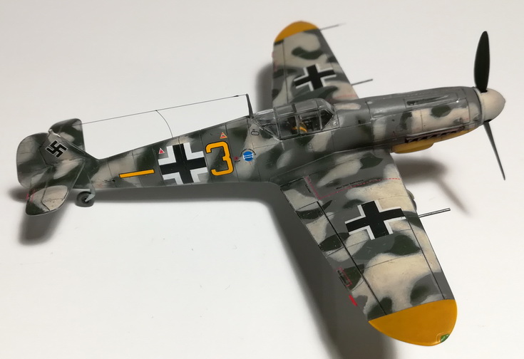 | Здравствуйте друзья и коллеги! И еще одна моя модель, построенная в рамках конкурса "Холодное небо Заполярья". Я долго откладывал ее, слишком уж сложный для меня был камуфляж, а главное, я не мог разобраться какой где цвет и как наносились пятна. Но, в итоге, находясь в отпуске, поэтапно со всем разобрался. Кому интересно, вот ссылка на стройку модели https://karopka.ru/forum/forum425/topic28616 Доработки минимальны: трубка ПИТО от "Мастер модел", пушки из медицинских игл, приводы гидравлики на шасси. Красил аэрографом. Краски сборная солянка. 02, 76, 74 и 75-ый цвет - Гюнза, 23-ий АКАН (триммеры), 70-ый цвет - "Хобби" и, наконец, белый - "Аркус". Именно благодаря тому, что "белый, аркусовский цвет был нанесен поверх нитрокрасок, я имел возможность подправлять форму пятен с помощью ватных палочек, смоченных в аркусовский растворитель, чем и воспользовался. После покраски модели наносил следы эксплуатации, но они минимальны, так как Мюллер на данном самолете вылетел первый и последний раз и было это 19.04.1943г в 11-30. В процессе сборки, наверное из-за спешки забыл вклеить бронезаголовник, так он и остался лежать покрашенный у меня. Ну а когда модель была уже закончена, еще одно огорчение меня ждало: я неправильно обозначил триммеры. Отдирать декаль не стал, пусть уже как будет. В работе широко использовал статью Юрия Рыбина "Снова о Рудольфе Мюллере" из журнала "Мир авиации" №1 за 1992 год, который у меня сохранился и по сей день. Хочу выразить огромную благодарность всем коллегам и друзьям, которые поддерживали меня во время стройки, помогали разбираться с этим непростым камуфляжем и просто уделяли вниманиемоей работе. Особую благодарность выражаю Сергею Красильникову, как организатору и вдохновителю этого конкурса. Всем желаю приятного просмотра, а каропчан призываю активно голосовать за модели участников конкурса, поле для голосования скоро откроется. С уважением, Макс Коробов. |