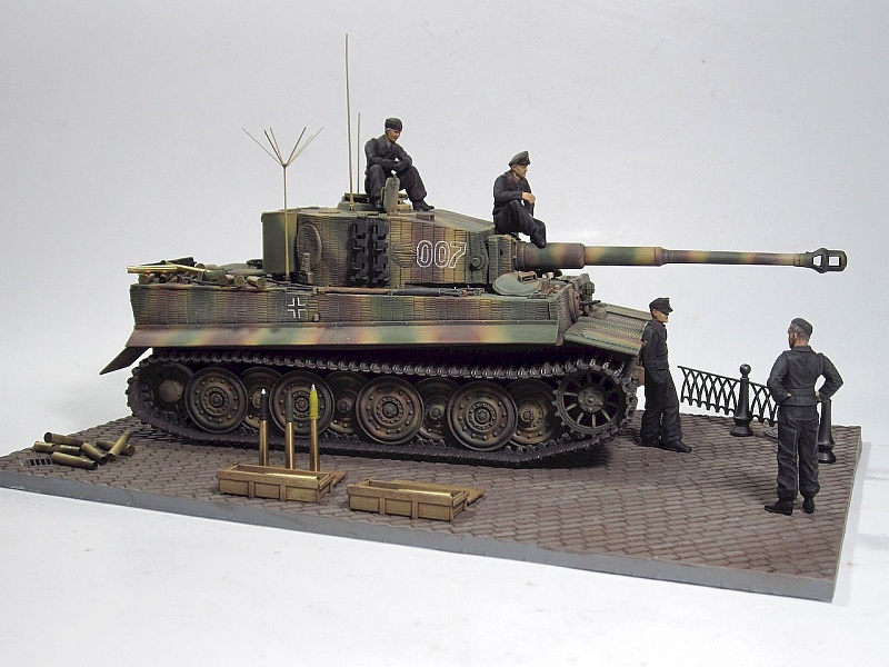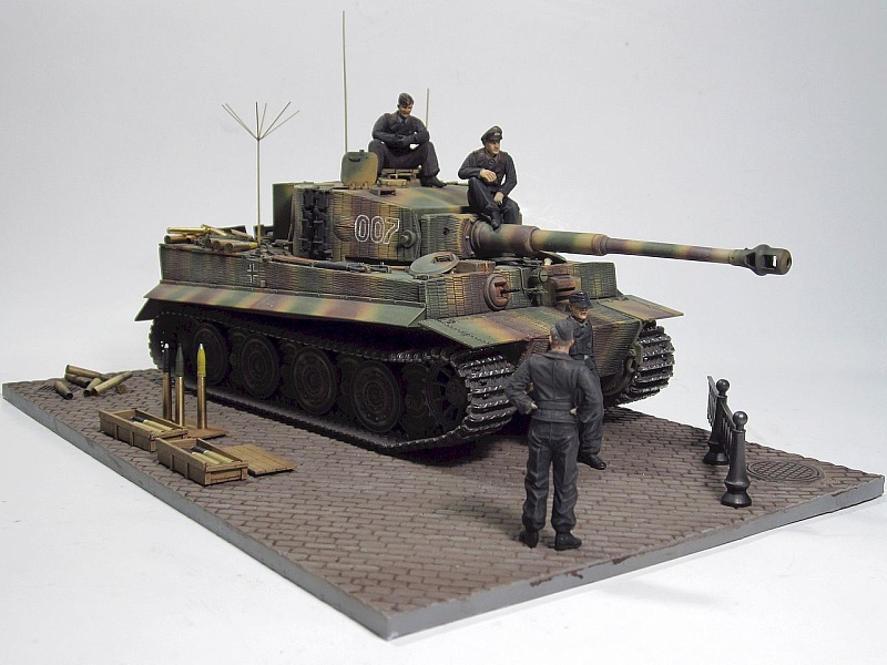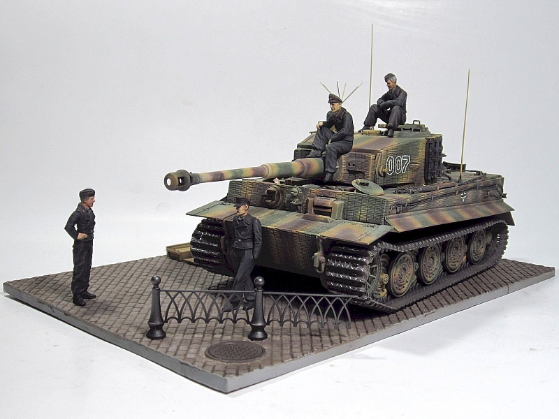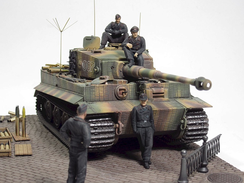 | Приветствую, уважаемые Коллеги! На идею создания этой виньетки меня натолкнуло обилие "лишних" деталей, оставшихся после сборки "Тигра" от Dragon, который я недавно здесь показывал. Их количество и качество позволили мне "реанимировать" и существенно доработать своего старого, давно собранного "Тигра" от Звезды, превратив его в командирский вариант машины. Исходный вариант с подробным описанием доработок и переделок показан здесь: http://artmodels.forum2x2.ru/t891-topic В закромах нашелся и старый "бесхозный" "тамиевский" набор танкистов, нашлась и "мостовая" от "миниарта" для подставки. Все это "срослось" в такую вот миниатюру. Легенда такова: Один из танкистов возмущается, что "геройский экипаж" попросту "забил" на погрузку боеприпасов; к тому же, где-то пропал стрелок-радист Ганс... Опять за водичкой пошел... В Баден-Баден, наверное, вместо ближайшей колонки... Остальные равнодушно выслушивают его тирады. Как-то так... Сильно не пинайте, т.к. "диорамщик" я никакой... Приятного просмотра. P.S. Модель танка не имеет исторической привязки. |