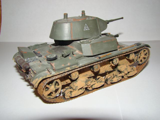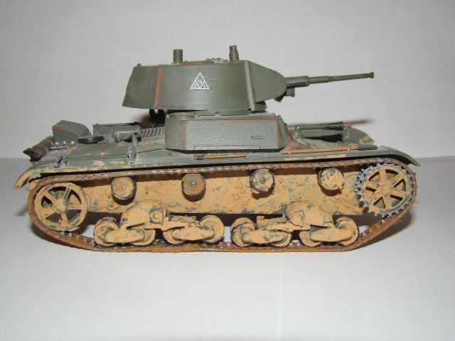 | OT 134 from Mirage Hobby – kit nr. 35309 - (1:35 Scale) Inside the triangle tactical insignia are the figures identifying the company number ("2"), of the flame thrower battalion, the number of platoon ("4") and the original number of tank in the battalion ("16") |