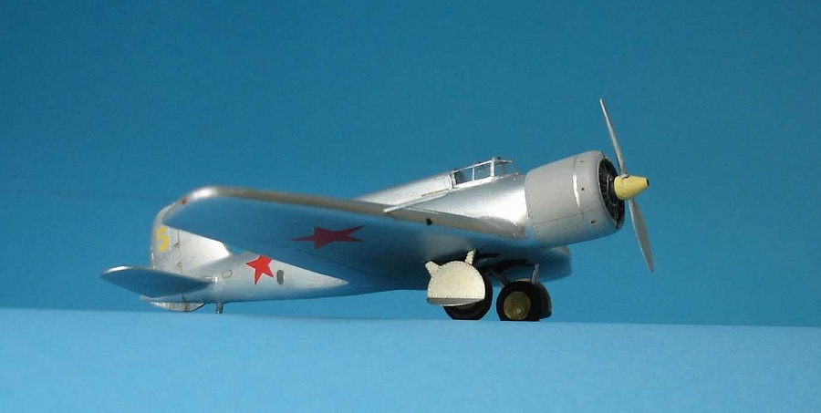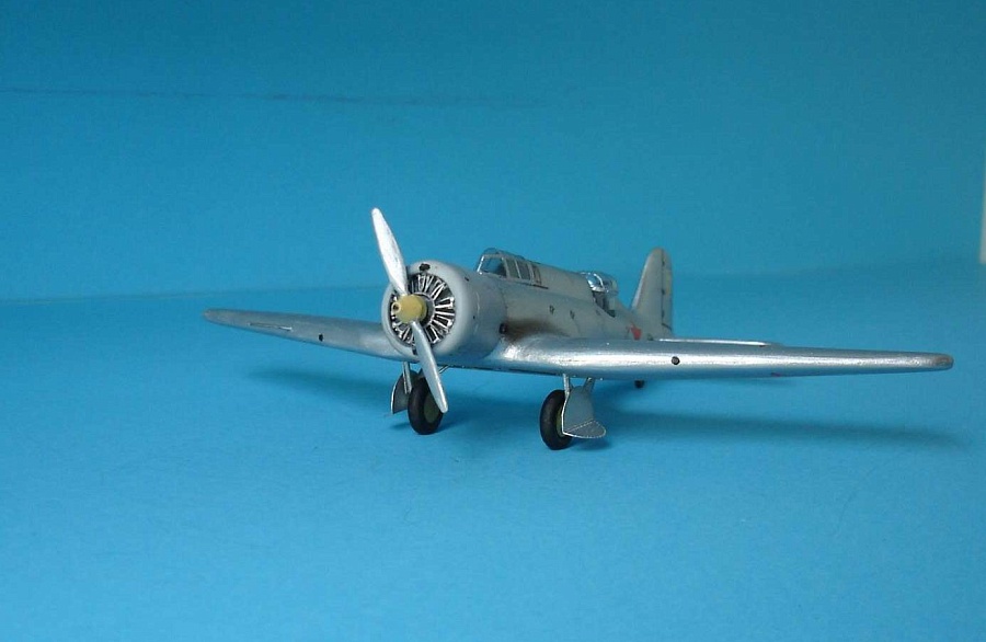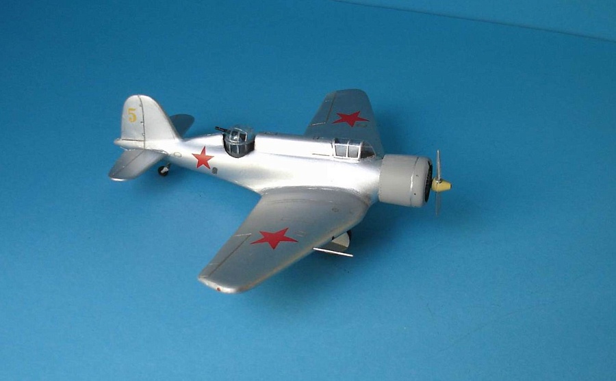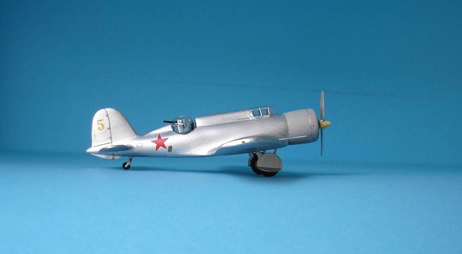 | Р-10 (ХАИ-5) — советский многоцелевой одномоторный самолёт-разведчик, лёгкий бомбардировщик и штурмовик, созданный в Харьковском авиационном институте под руководством И. Г. Немана в 1936 году. После ареста Немана в 1938 году доводкой машины занимался А. А. Дубровин. С 1936 по 1940 годы в большой серии выпущено 493 машины. Производился в Харькове и в Саратове (с 1937 г.), где для его серийного выпуска был задействован завод сельскохозяйственного машиностроения «Саркомбайн», ставший с этого времени авиазаводом. Принимал участие во всех вооружённых операциях РККА конца 1930-х и начала 1940-х годов начиная сХалхин-Гола летом 1939 г. В 1940-м в производстве его сменил Су-2. До 60 единиц Р-10 было передано в Аэрофлот, где они эксплуатировалось под маркой ПС-5. Принимал участие в Великой Отечественной войне до 1944 года (со второй половины — в большей степени как учебный) Модель выполнена из коробки,трудностей в сборке не представляет.Особенностью лишь является вакуумное остекление,которое пришлось клеить цианокрилом.В комплект входил и фотоэчет:створки шасси,турель пулемета,тяги к стойкам шасси и др.мелочь.Покраска,как обычно эмалью Ревелл,основновной-эмаль аллюминий.Порадовала и хорошая дека,которую перевел не пребегая к помощи лака. |