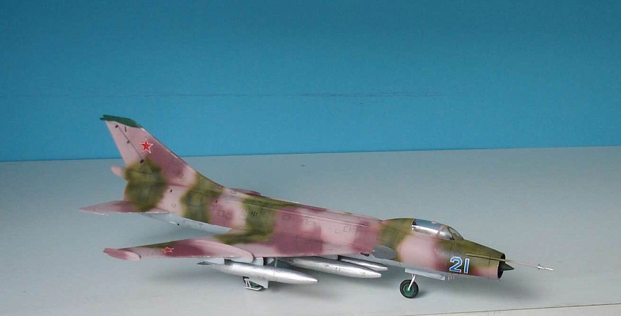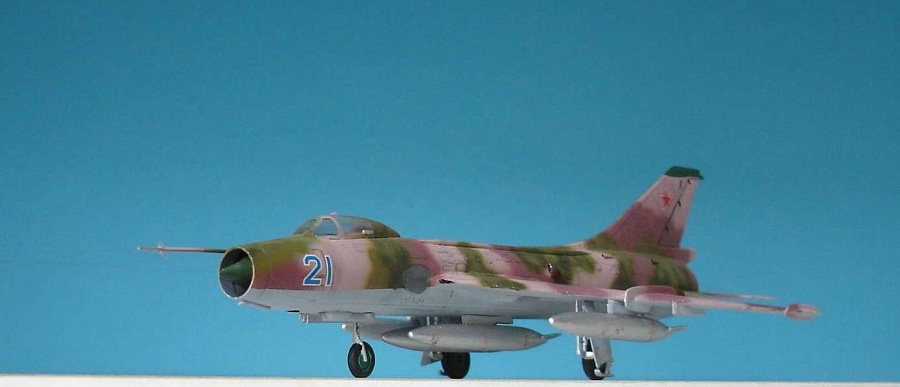 | Продолжая серию камуфляжных семерок.Доработанный Су-7Б,в конструкции которого нашло применение колесно-лыжное шасси,двухкупольная тормозная парашютная система,увеличенное переднее колесо,а также новые средства РЭБ.Новая модификация заменила на стапелях Су-7БМ,с 1965 года. Модель старенькая,еще производства бывшей Чехословакии.Выполнена из коробки без переделок.Расшивка внешняя.Сборка трудностей не представляет и не требует большого количества шпаклевки.Покраска-эмалями Ревелл,плюс немного тонировки. |