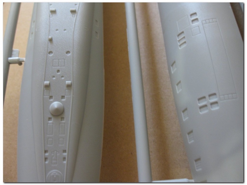 - членение корпуса проходит по линиям расшивки волнорезных щитов торпедных аппаратов. Восстанавливать после шпаклевания расшивку будет очень непросто.