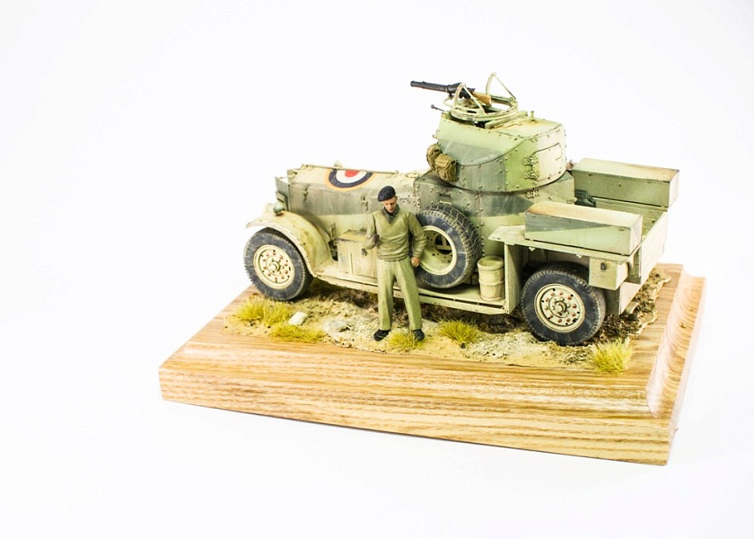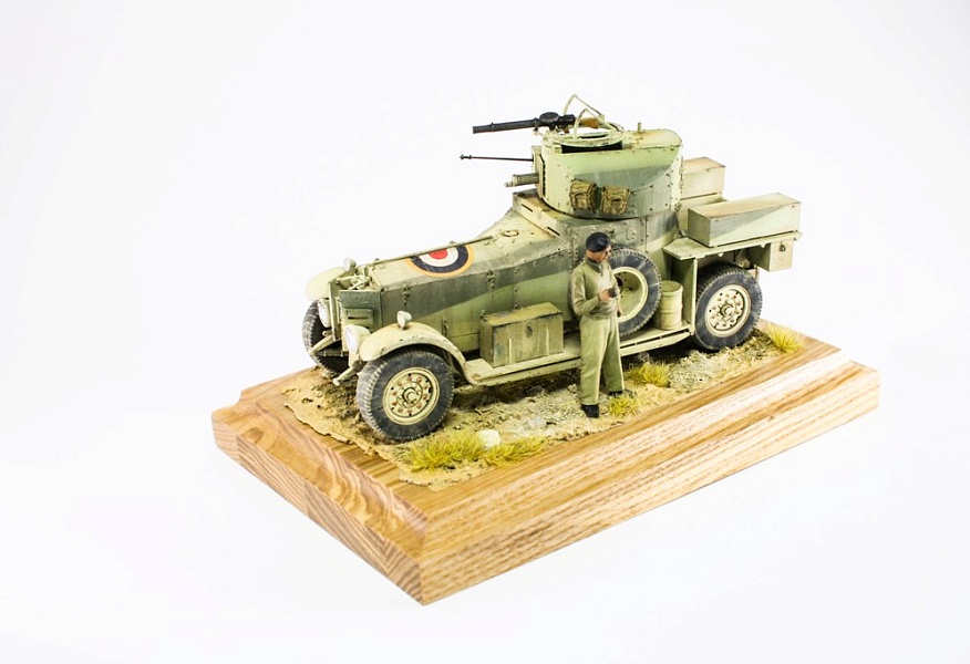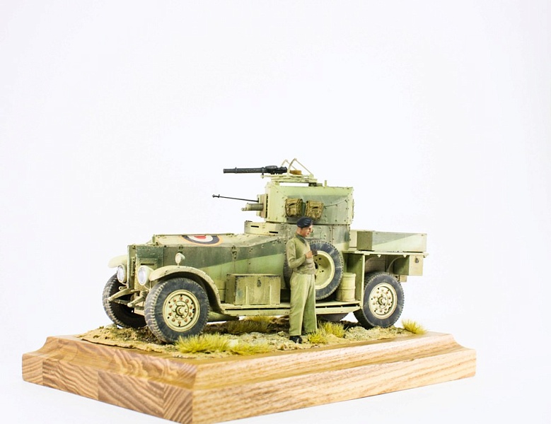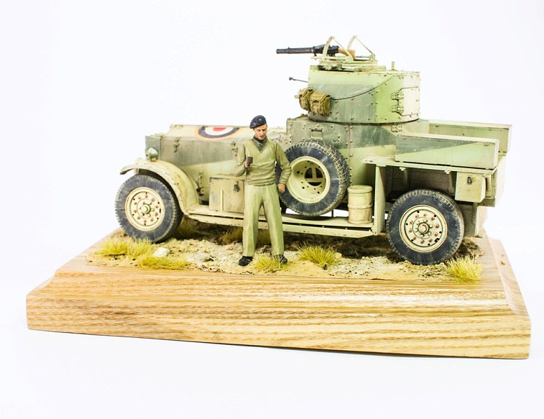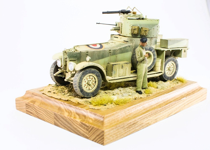 | Давно хотел сделать этот броневик, а тут свежая новинка от Менг. Уже делались обзоры на эту модель и сетовалось на ее упрощенность и дубовость, ну что поделать, что есть-то есть. Выбрал вариант на Западную пустыню 1940-1941. Предположительно 11 гусарский полк в составе 7 дивизии. Именно у них были на вооружении Роллс-Ройсы в это время. опознавательных знаков на них вроде как бы и не было, ноя добавил кокарду Королевских ВВС, так красивше. Фигурка из набора МБ изображает генерала Монтгомери, но я добавил ему голову от Хорнет, сделав из него рядового поджарого танкиста, не уверен, впрочем, что кавалеристы носили черные береты. Красил красками АК-real colors для себя решил, что это лучшее, что есть на данный момент. Везеринг маслом, эмалью и пигментами. Сама сценка изображает типичное британское чаепитие в 5 часов дня. Война войной, как говорится, а чай в 5 часов вынь да положь. |