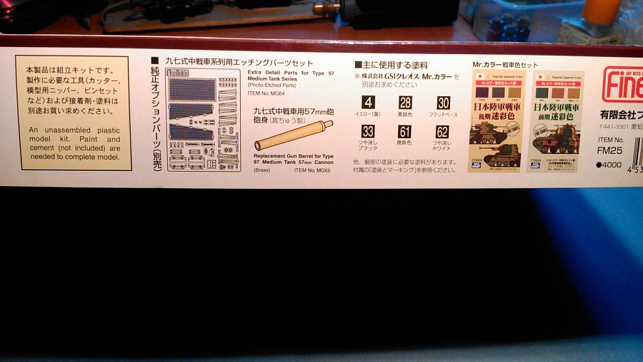 | Представляю Вашему вниманию обзор еще одного набора от Файн Молдс, на этот раз - узнаваемый большинством Тип 97 "Чи-Ха". В отличие от набора с Чи-Ну, даже просто при взгляде в коробку сразу становится ясно, что содержимое стоит затраченных денег. На боковине коробки находится полезная информация, а именно - отсылки к набору травления и точеному стволу от того же Файн Молда, которые рекомендовано использовать с этим комплектом, схемы раскраски и фотографии прототипа (документальные или современные). В коробке лежит большое количество литников, две резинки траков (опять на жесткой рамке), есть литник с прозрачными деталями(двумя бутылками в том числе), лист декалей и плата с травленой решеткой. Ствол опять из двух половинок, возможно следует заменить его на предлагаемый железный. В целом, литье понравилось, брака нет, все заклепки хорошо просматриваются. Модель обошлась в 1200р(без учета доставки) Для замены резиновых гусениц я приобрел наборные траки для среднего танка Чи-Ха от производителя Vision Models. Визуально качество литья понравилось - никаких литьевых огрехов не обнаружено, допиливать или шпаклевать не придется. Траки заявлены как рабочие(на защелках), однако по факту защелки очень слабые и лента будет разваливаться от минимального движения. Так что лучше их зафиксировать на клей, как обычные наборные мэджики, либо попробовать рассверлить и посадить на проволочные пальцы. |