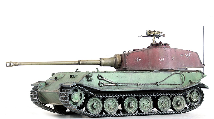 | Доброго времени суток, друзья!Сегодня на повестке дня герой одной малоизвестной игры в случайные бои VK45.02B, а в простонародье "Тапок Б" от Драгон!Модель строилась в подарок шефу, любителю компьютерных танчиков!!!За основу был взят кит от Драгона и башня от ТиграII от Звезды.Модель собрана полностью из коробки. Единственное, пришлось совместить посадочное место Хеншелевской и Поршевской башен.Из "допов" - ПНВ от Bronko (набор АВ3577).Окраска: Тамия XF-28+XF-21корпус, XF-7 грунт (башня). С уважением, Пикассо! |