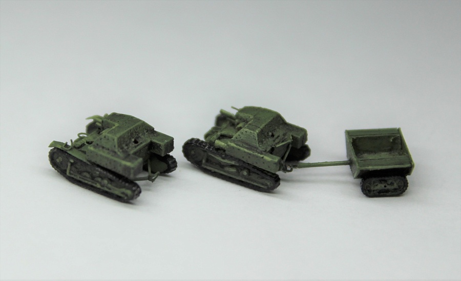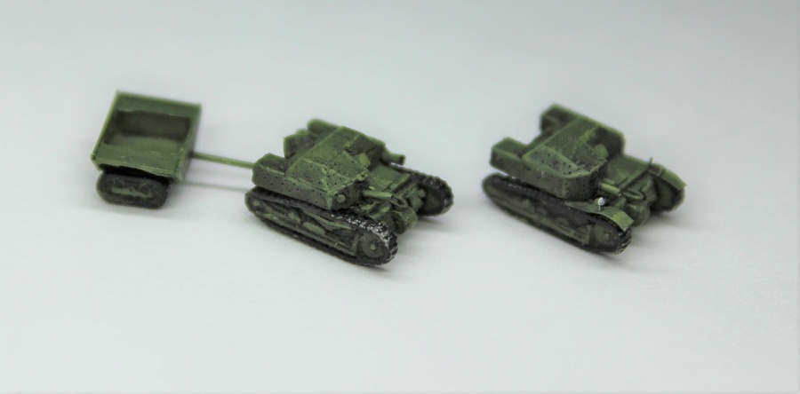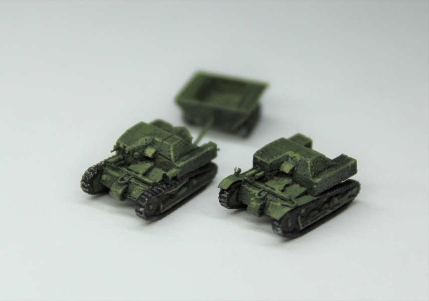 | Доброго дня! Пополнение танкеток в масштабе 1:285 Доделал еще две САУ на шасси Т-27 , корпус из тамиевского милипута и алюминя листового, ходовые - 3д печать на фотополимере. Получилось более-менее. Покраска Тамиевскими акрилами, масло ладога, смывки/заливки/пигменты ЗИП. |