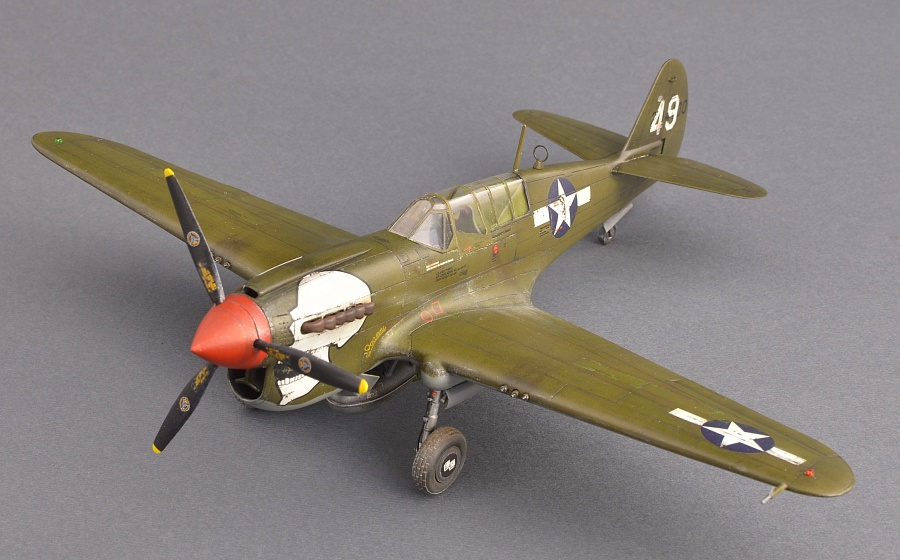 | Здравствуйте, уважаемые коллеги, представляю вам модель американского истребителя Curtiss P-40, машина известная и в представлении не нуждается, получить информацию о модификации N можно здесь. Модель от Eduard производит двойственное впечатление. С одной стороны, в комплекте идет куча профипаковских бонусов: неплохая смола на ниши, кокпит и колеса, приличная плата травления, шикарная дека. Но все портит сам пластик, доставшийся в наследство от Mauve: хрупкий и ломкий, а чтобы состыковать его, у меня ушло ведро шпаклевки и несколько вставок из листового пластика. Лично меня модель привлекла вариантом Death Head'a, выглядит оочень харизматично и не так заезженно, как зубастые собратья, но все же если вы хотите собрать поздний P-40, то возьмите лучше Хасегаву. Прототип - White 49 'Joanne', 80th Fighter Group, Karachi, 1943. На архивных фото самолеты из 80й группы выглядят весьма полетавшими и чумазыми, постарался по мере сил это изобразить. Насчет чехлов в нишах в курсе, даже попробовал их изготовить из двухкомпонентной шпаклевки, но получилось ужасно и решил не прятать за этим жалким подобием смоляную красоту. Имитацию пулеметов безжалостно срезал и сделал заново из тянутого литника и медицинских игл, выхлопные патрубки заменил на смоляные от Quickboost. После грунта модель была ненавязчиво проклепана по имеющимся чертежам. Окрашивал акрилами Tamiya и Gunze, глянцевый лак - футура, следы эксплуатации и тонировка художественным маслом и акварельными карандашами, нагар - тамиевскими пудреницами. Финишное покрытие - сатиновый лак Humbrol. Хочу добавить, что я не вгоняю модели в чертежи и не правлю геометрию - отчасти из-за недостатка времени, отчасти из-за того, что не владею должными навыками. Художник во мне всегда побеждает инженера и модель для меня это скорее художественный образ, нежели реальная копия. Спасибо и приятного вам просмотра! |