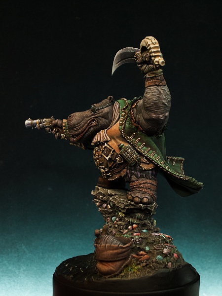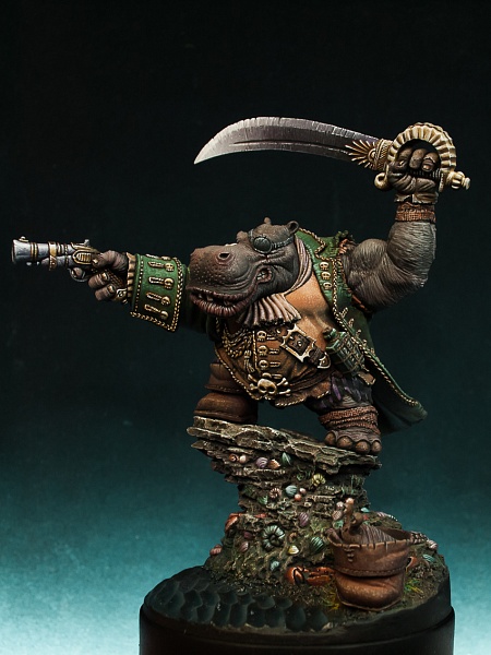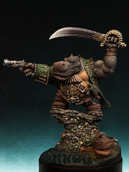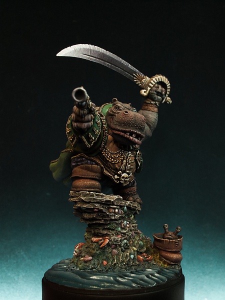 | Всем привет! Ещё одна фигура что я завершил прошедшей осенью - Hippo Pirate производства отечественной фирмы Cartoon Miniatures смола, 40mm. Скульптор - Александр Ковалёв |