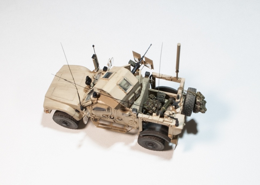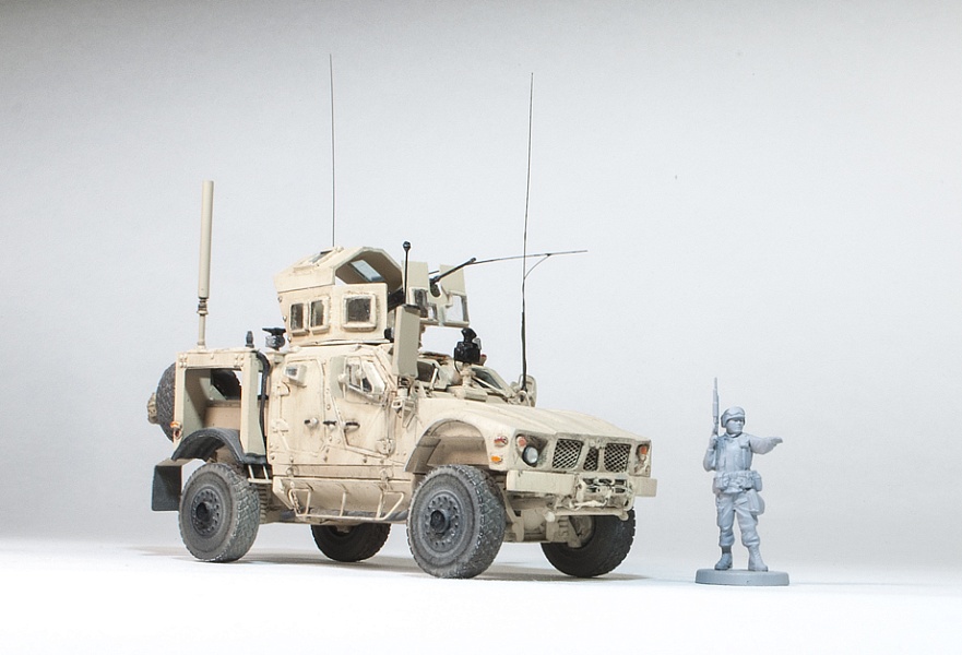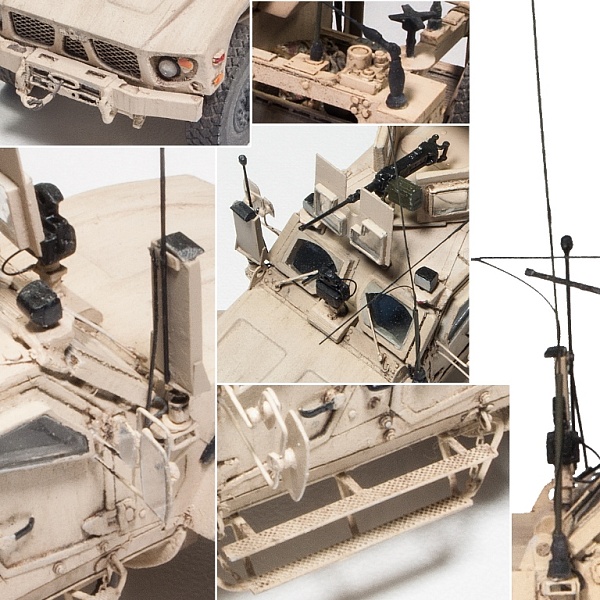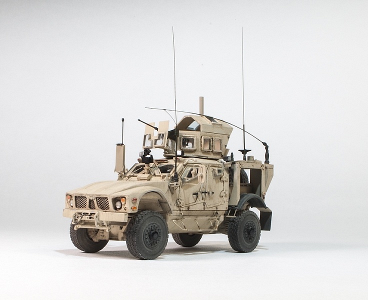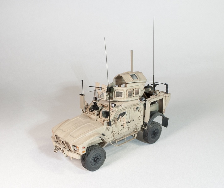 | Исходная заготовка - смоляная модель фирмы RESINEC. Фирма выпустила 3 модели MRAP лет 5-7 назад и почила.Модели все очень не простые, так как для их сборки надо повсеместно удалять гребенку растишки. В те времена качество 3D печати было еще далеко от совершенства. А производитель в спешке, или из лени не захотел предварительно отшкурить все детали мастер-модели. В результате, чтобы собрать это, нужно сначала все детали тщательно зашкурить. Что ведет к утере практически всех мелких деталей. У модели много упрощений и ошибок, которые пришлось исправлять по ходу стройки. Стройка шла в несколько этапов. С большими перерывами. И огромными трудозатратами. Практически вся мелочевка изготовлена заново и с нуля.Вот по памяти, что смог вспомнить: сделал заново все антенны, дворники, передний прибор наблюдения, переднее планки под стекла с проводкой для дворников и заклепками, вырезал передний капот и его защелки, изготовил и установил практически все световые приборы по периметру, заменил фаркоп, фары на Эльф, изготовил правую ночную фару, сделал проводку у всех антенн и в кенгурятнике, изготовил или добавил экстерьер и интерьер пулеметного "скворечника" (люки доступа, заклепки), изготовил и навесил на него задний ящик, заменил щиток перед пулеметом, переделал сам пулемет и его крепление, Переделал задний кузов и. На него установил лючки, заклепки, все антенны и проводку. Полностью переделал консоль держателя заднего колеса и изготовил лесенку для подъема в кузов.Добавил тяги на задние колеса и тормозные шланги. Накидал в кузов барахло для оживляжа. Много чего еще по мелочи, все не упомнишь. Модель окрашена красками AK-Interactive и AMMO of MIG. Сделал легкое высветление (типа модуляции). Нанес их-же смывку и эффект полос из набора для американской техники в пустынной окраске. Сделал не все, что мог. И результатом не вполне остался доволен. Но с учетом качества исходника... Кто в теме, тот знает, что это были за дрова.Приятного просмотра! |