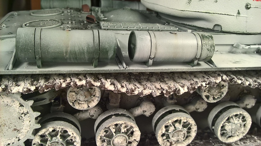 Только ИМХО металлические траки жалко, если их так уделывать, то и стоковые вполне подошли-бы на эту роль, один фиг под слоем снега/грязи ничего не разберешь.