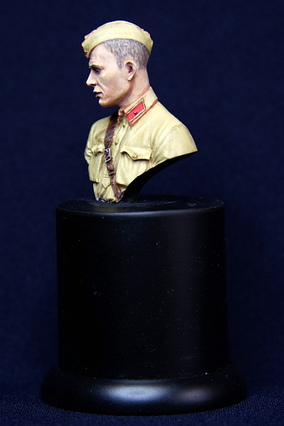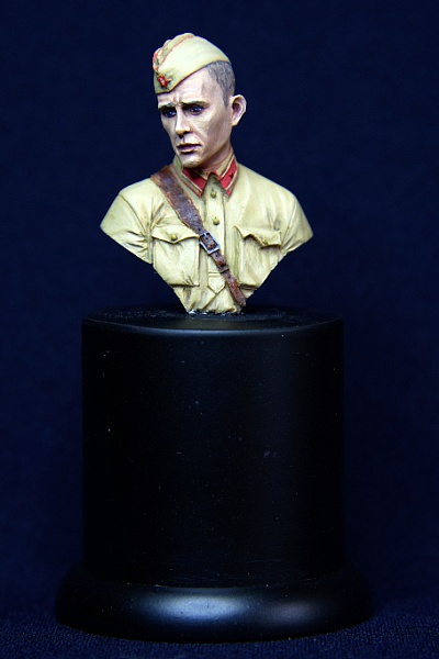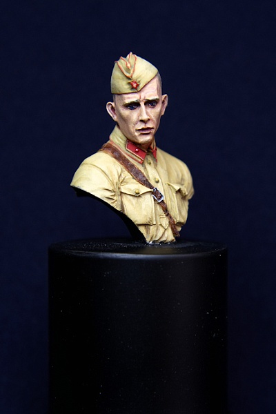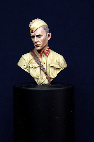 | Приветствую всех. Как говорится "И тут Остапа понесло", опять попробовал новое для меня. Бюст младшего лейтенанта РККА 1941 год в масштабе 1/16, китайская копия ( кстати очень качественная) . Красил акрилом Vallejo. | |