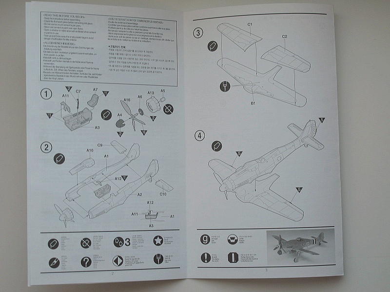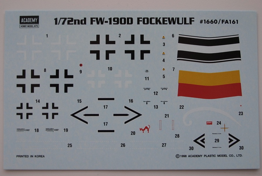 В коробке с верхней загрузкой - 3 литника серого академовского пластика + 1 прозрачный, инструкция и декаль на 3 версии. Инструкция - вполне понятна и подробна. Декаль выглядит аккуратно, но, боюсь, как все академийские декали, будет легко и быстро липнуть но плохо привариваться.