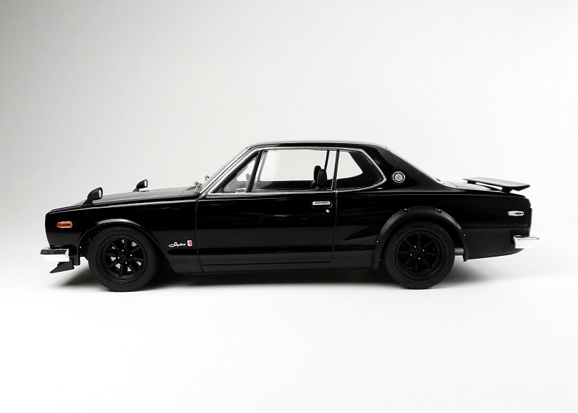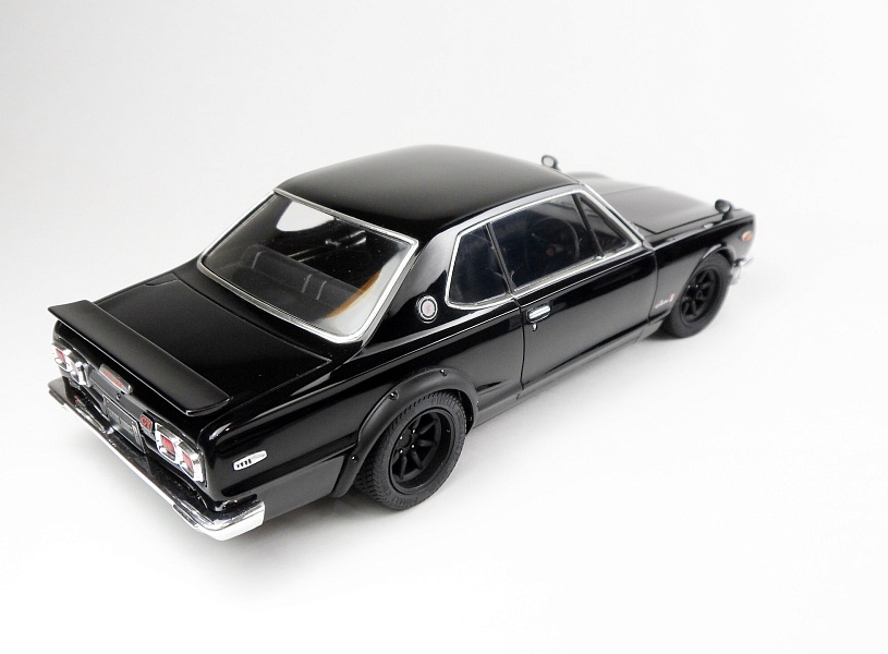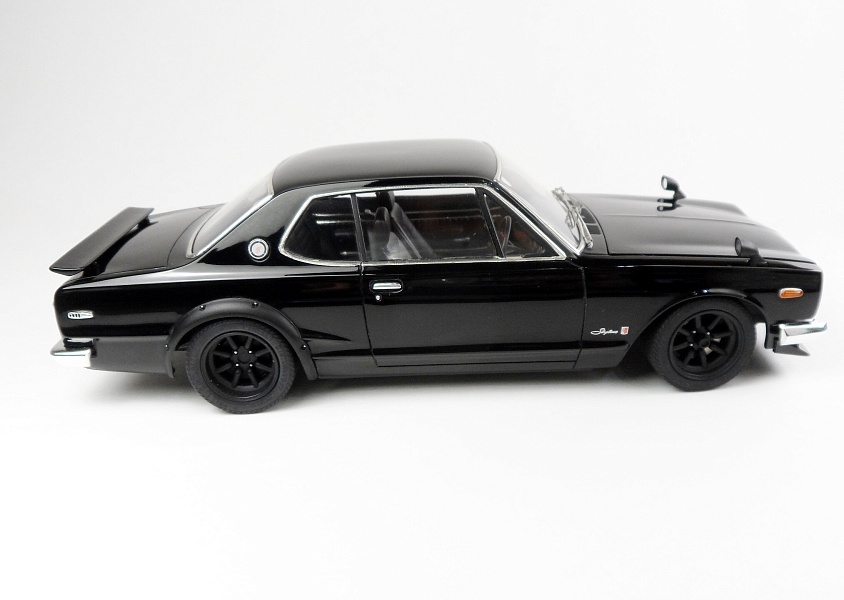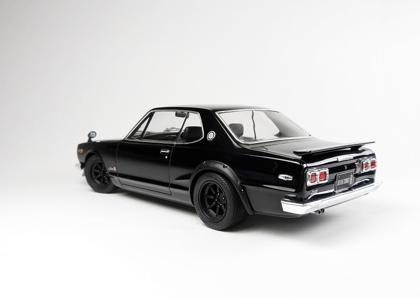 | Здравствуйте, отфотографировал модель построенную где-то год назад. Из доработок только заменены дворники на травленый и родные диски Watanabe на аналогичные от Fujimi, на них полка чуть больше. Кузов окрашивался аэрографом, краской Tamiya TS-14, лак TS-13, полировка, финишная обработка воском. | |