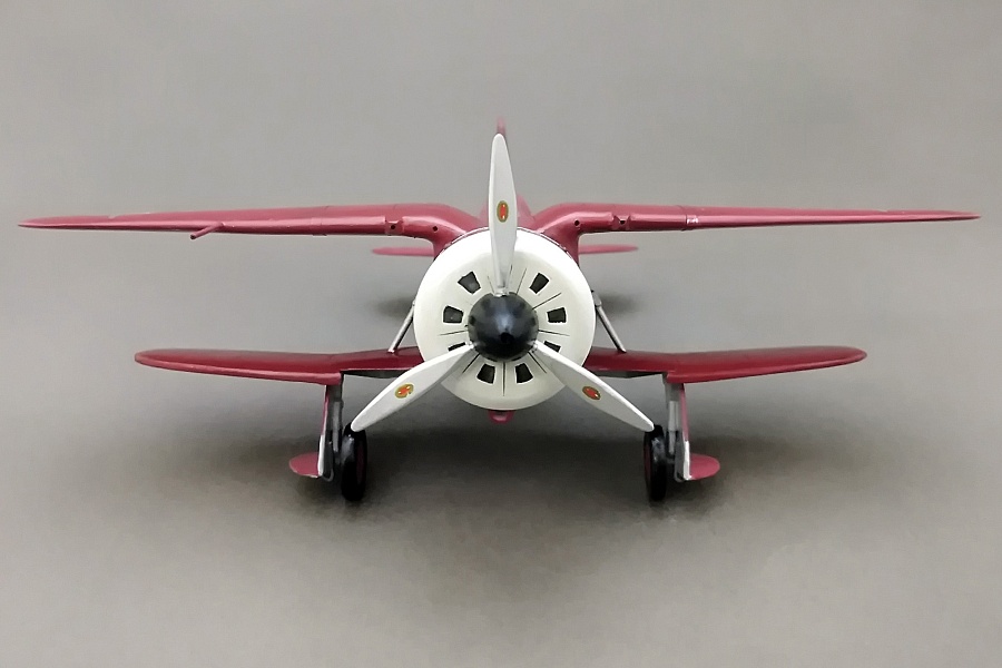 | Не впервые я столкнулся с данной моделью, до этого уже строил Ис-2 - тот же самолет с другим мотором.Что тут можно сказать - это Амодел.Модель неплохая, но совсем простенькая и довольно дубовая. Благо прототип простой, удалось более-менее доработать.И так по списку:1) был углублен крой2) были сделаны лючки и стяжные ленты из алюминевой фольги3) был сделан новый фонарь взамен толстого и не прозрачного4) сделаны наплывы в местах установки внутренних пулеметов (самих пулеметов у прототипа судя по фото не было)5) сделан ПВД6) сделаны качалки рулей высоты из пластика7) сделаны рычаги подьема коротких секций створок шасси8) сделаны новые выхлопные патрубки9) сделано стяжное кольцо капота из фольги10) сделаны рычаки складывания крыла. Спаял их из проволоки.11) сделаны расчалки на хвостовом оперении По окрасу. Тут такая модель была некоторое время назад и там в теме была дискуссия, я с ней ознакомился и принял решение красить так.Во первых на фото видно, что самолет сверху и снизу одного цвета, а цельно-зеленых самолетов в 30-е годы не было.Во вторых видно, что цвет полос не похож на желтый. В третьих звезды бликуют.Поэтому основной цвет красный, ливрея белая, звезды серебристые.Надул все акрилом от ганзы. Трафарет на ливрею сделал сам, на звезды заказал. Вроде бы так. Фото к сожалению лучше не будет - камера погибла. | |