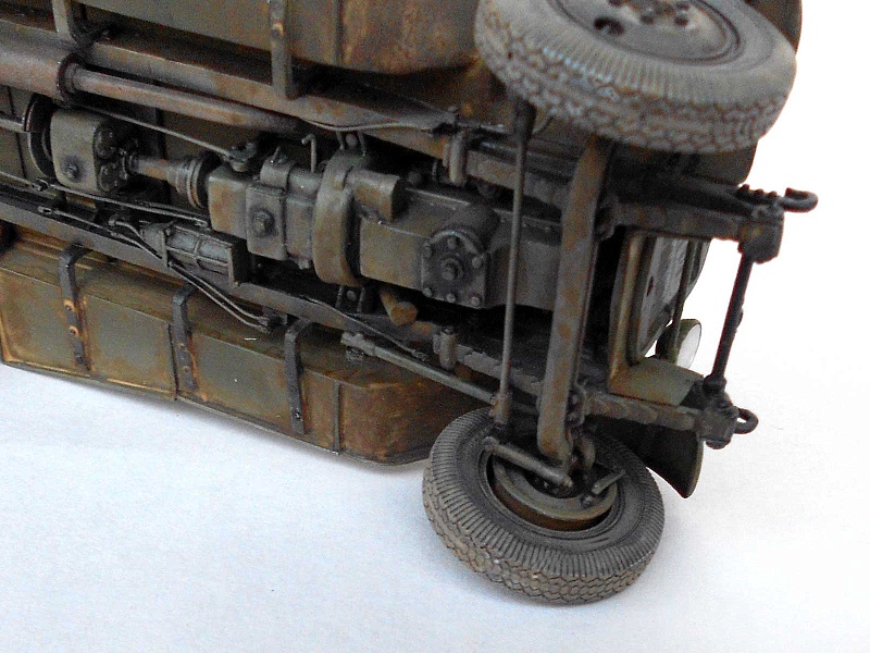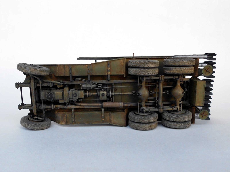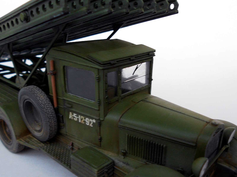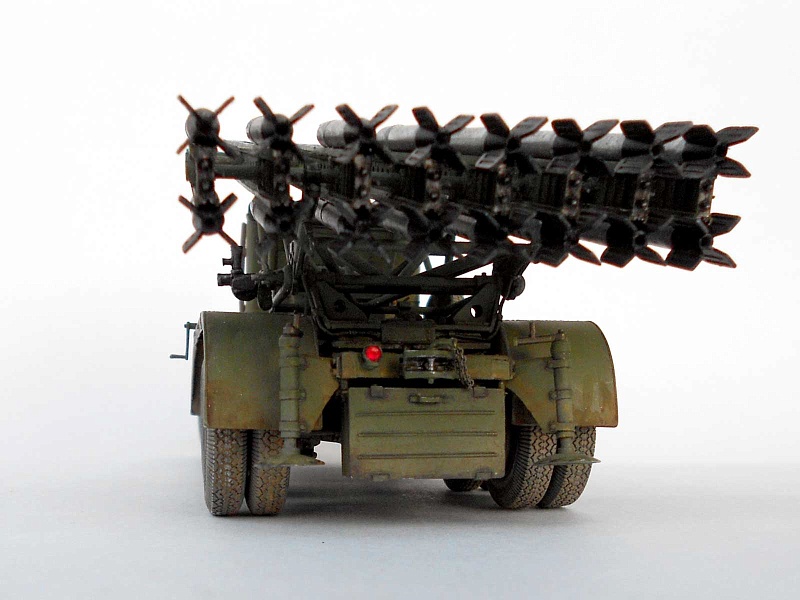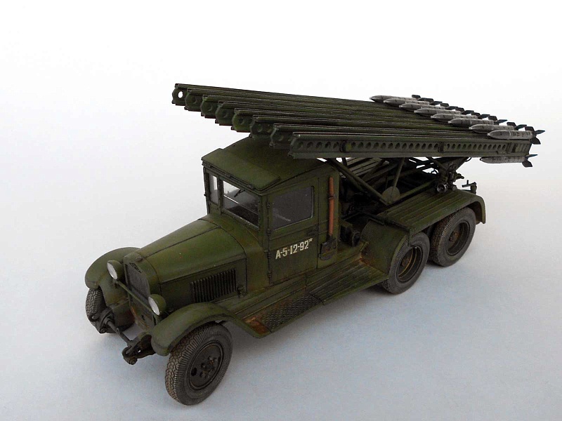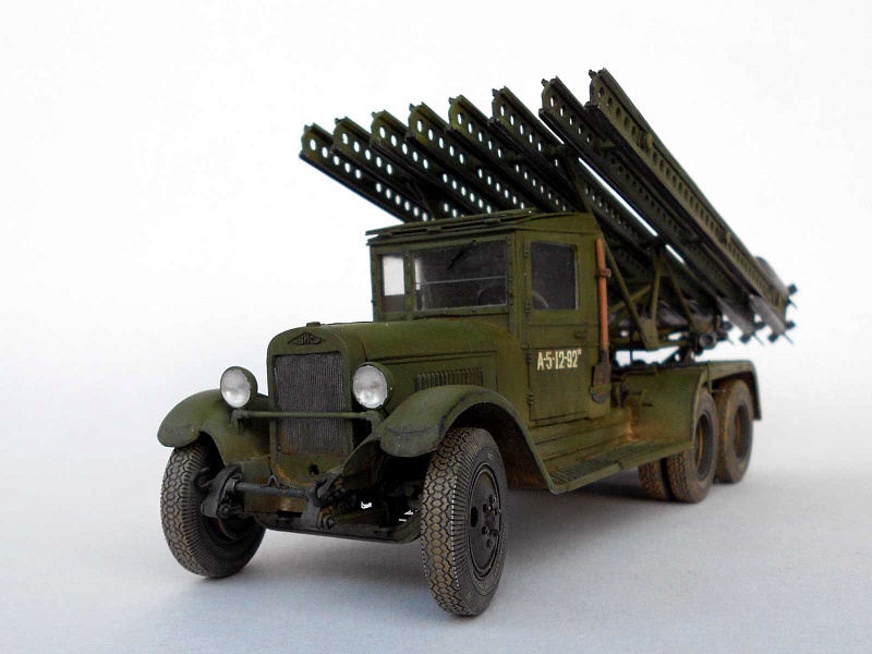 | Решил собрать реактивную пусковую установку М-13 на шасси ЗИС-6, первый серийный вариант реактивного миномета "Катюша". На 1941 год из первых батарей. Модель от АРК на сегодня пожалуй безальтернативная, представляет из себя слегка апгрейженную модель разработки фирмы Алан 20-летней давности. В наборе у АРК новая ферма, направляющие и собственно реактивные снаряды. Переделок много - рама с механизмами и подвеской (сделан демультиплекатор с тягами и рычагом, вакуумный усилитель тормозов , тормозные тяги, доработана подвеска и т.п.), сделаны задние крылья и доработаны передние, убран подрамник, доработаны направляющие, новые подножки, бак, домкраты, лопаты, пила, защита кабины, прицел (со снятой панорамой, закреплен в походном положении) , ящик для аккумуляторов, пульт управления стрельбой, переделана задняя стенка кабины, торпедо, створки капота, радиатор и прочее и прочее и прочее.... Не тронутым остался пожалуй только двигатель )))) Стройка велась в рамках конкурса "Техника Победы". Из дополнений колеса от "Комплект Зип" и фары Эльф (в качестве лампочек микро бисер). Окраска коктейлем из Тамии, реактивные снаряды - 2 оттенка стали от Pacific88 . Обгадинг и задиринг - масло "Сонет", пигменты Mig. Маркировка на снаряды напечатаны на лазерном принтере, использована декупажная пленка FreeDecor. За время подготовки к стройке и собственно работе с моделью накопился определенный материал по отечественной реактивной артиллерии военного периода. Тема реактивных установок мне понравилась, скорее всего продолжу. Приятного просмотра. |
