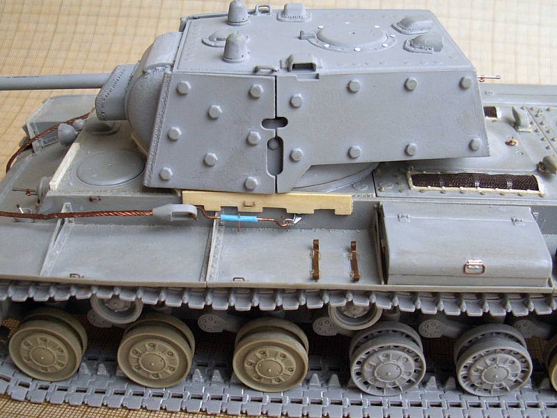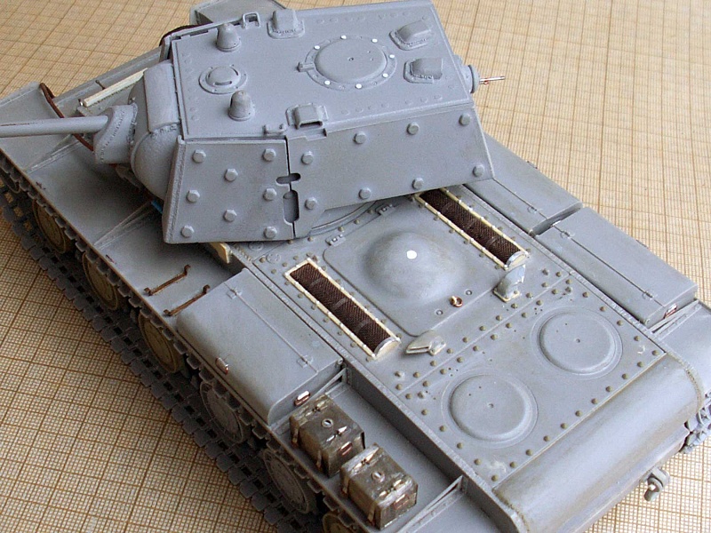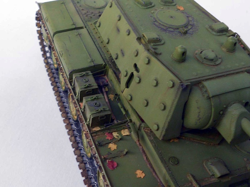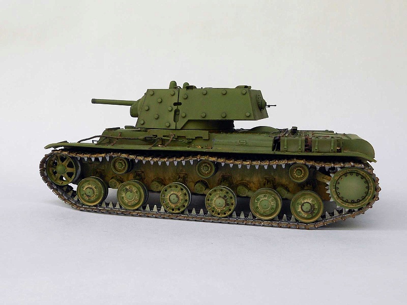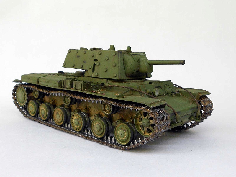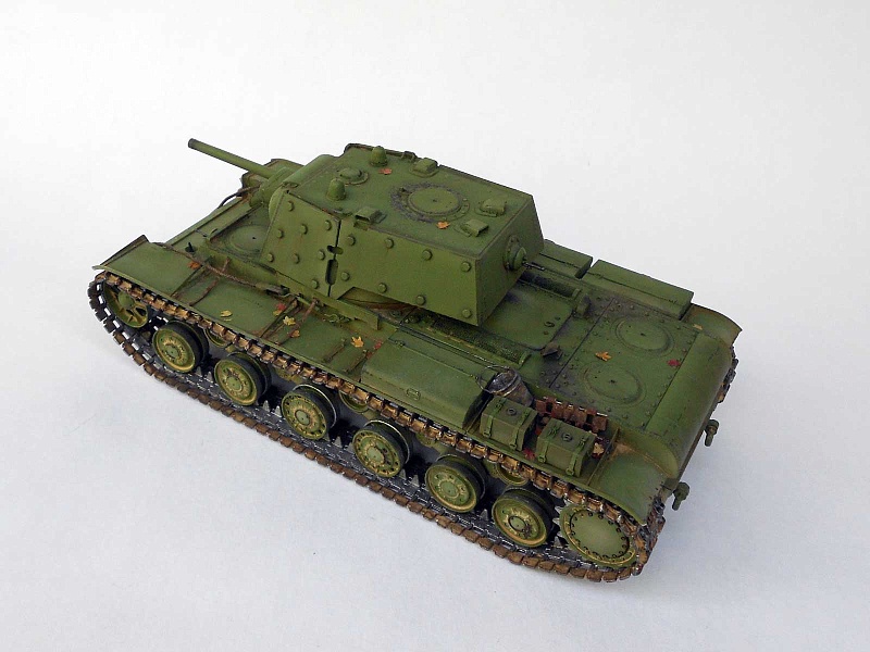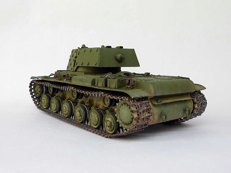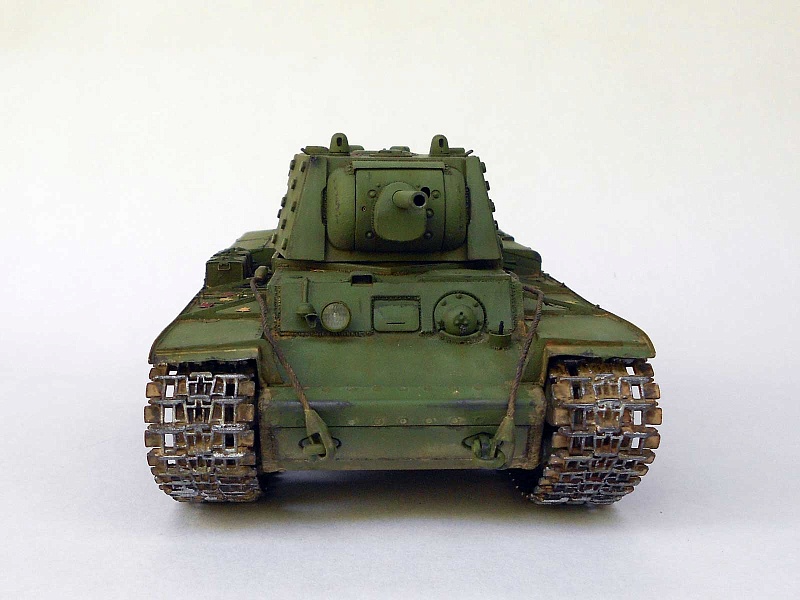 | Известный и уже заслуженный кит от китайских товарищей.Делал модель танка, выпущенного в начале июля 1941 и воевавшего в сентябре на Ленинградском фронте. Доработок немного и в основном косметического характера: - башня - гужоны без обварки на крыше, смотровые приборы, фактура литья на скулах маски, бронировка кормового пулемета и сам пулемет. Ствол орудия метал (производителя не помню), остальное по мелочи. - корпус - доработано днище, катки двух типов - без отверстий (ДТ-35) и усиленные, дополнительная бронировка погона и люка механика-водителя, сетки, крыша МТО (гаечки, болтики, отверстия для внутреннего крепежа), баки (Абер) и их крепление, скобы и ремни для крепления брезента, сварка и резка, пулемет и его бронировка, основание антенны, стяжка крепления тросов и т.д.. - покраска - коктейль из Тамии, масло Сонет, грифельный карандаш, пигменты. В итоге получился большой зеленый танк, что показалось немного скучным. Бросил немного хлама (ведро, траки, лопата, кирка) и горсть листьев. Приятного просмотра! |