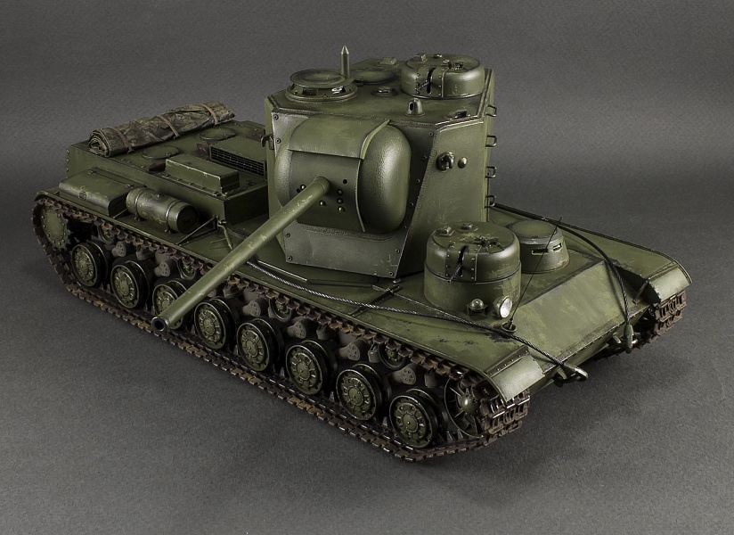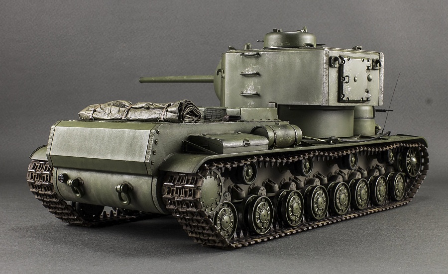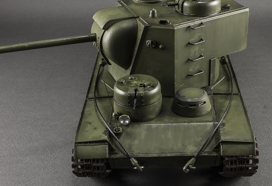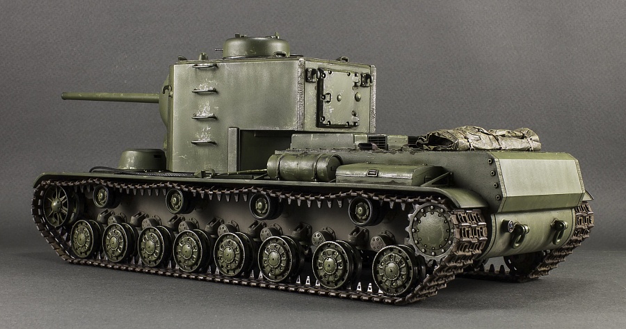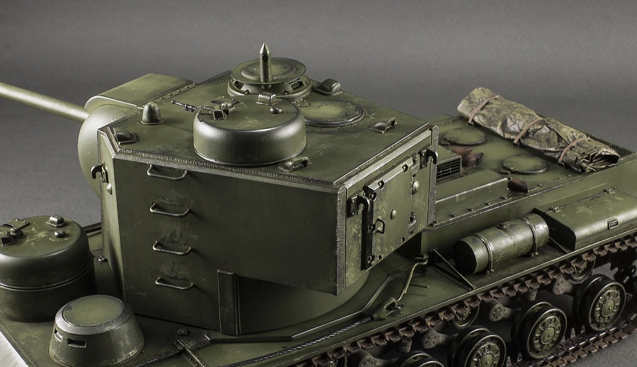 Всем привет! Вообще хотел собрать подряд три Советских многобашенника : Т-35 , Т-28, КВ-5. Но как это бывает во время стройки однотипность начинает наскучивать. После Т-28 решил поразмяться на КВ-2 и КВ-1 и уже после достал коробочку с КВ-5. Набор от Трумпетера очень понравился, хотя там было несколько неприятных моментов ,но это мелочи ,сборка прошла на одном дыхании. Во время стройки решил, что этому 100 тонному монстру если бы он был принят на вооружение не помешали бы дополнительные топливные баки. Баки я взял из набора Восточный Экспресс КВ-1. На тыльной части башни установил дверцу для загрузки боекомплекта от КВ-2 по примеру Сергея Gron1000. Еще из звездовского набора КВ-2 вытащил коуши и талрепы с крюками для тросов ,крюки срезал и изготовил из проволоки. Трос поставил металлический. В фару вклеил отражатель, рассеиватель фары взял из закромов - трумпетер рассеиватель дал в пластике, это печально. Так же от себя добавил скатку брезента , предварительно вклеив скобы из проволоки 6шт в крышу МТО, для крепления этой самой скатки. Красил ИКСой от Тамии, цвет мешал на глаз. Приятного всем просмотра. |