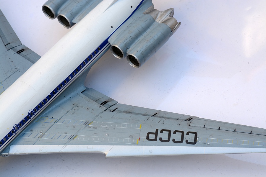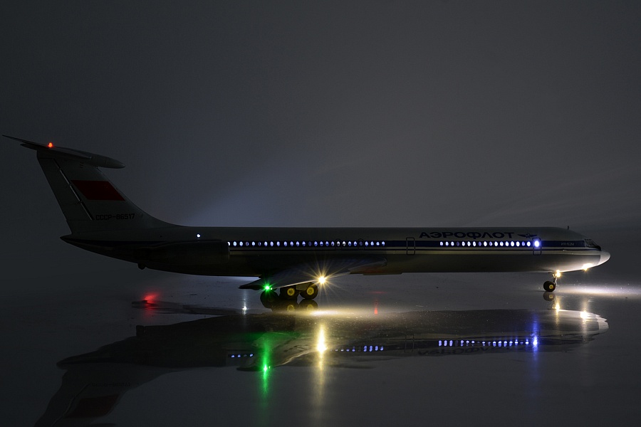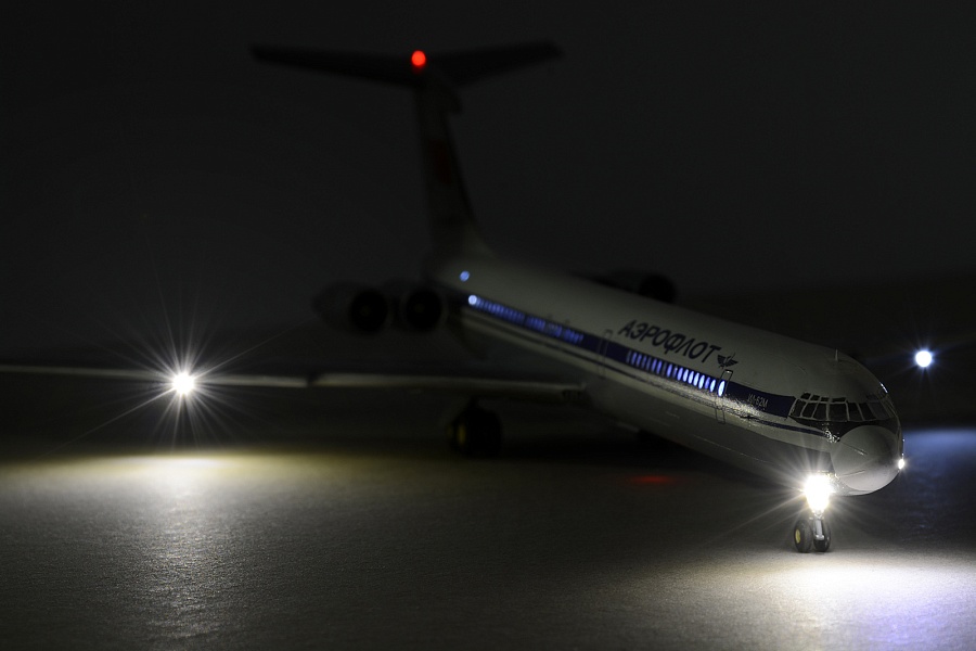 | Приветствую Всех! Представляю модель самолёта Ил-62М от производителя “ ЗВЕЗДА “. Это была самая совершенная модель, которую я когда-либо собирал. Производитель этого набора, как мне кажется , предусмотрел все , а детализация, качество отливок, варианты сборки- все это на самом высшем уровне. Если у меня и были проблемы со сборкой, то только из-за того , что невнимательно изучил инструкцию. Мои дополнения: навигационные огни, проблесковые маяки на фюзеляже и киле , посадочные и рулёжные фары , освещение в салоне , датчики, антенна . Вся электроника, аккамулятор и разводка легли в центроплане . Впервые использовал набор для везеринга. Настолько увлекся им, что кое-где переборщил, нанося грязь и следы эксплуатации. Видео работы навигационных огней можно увидеть тут: https://youtu.be/JfaTFoWlgR4 Приваривал декали с помощью DecalFix [Humbrol] При покраске использовал аэрограф , краски ТАМИЯ COLOR Enamеl Paint XF-2 [Flat White]; XF16 [Flat Aluminum]; X-32 [Titanium Silver]; X22 [Clear] XF-85 [Rubber Black, Acrylic] Шпаклевка ТАМИЯ Weather set Revel | |