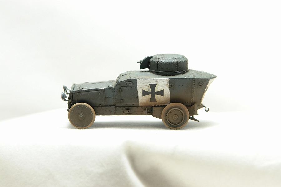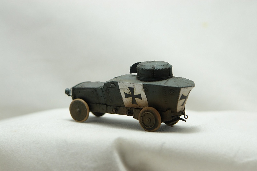 | День добрый,Представляю вашему вниманию смоляную модель необычного броневика Австо-Венгерской Империи времен ПМВ. По количеству произведенных прототипов информации мало, но счет был на единицы. По самой модели - смола , как всегда у Моделтранса кривая. Пришлось перепиливать заднюю часть, так как совсем не билась с фотками прототипа. Добавил ящики перед задними колесами, штанги с хомутами перед ними же, кронштейны фар спаял с нуля. Выхлопная тянутая уховертка. Окраска типа Фельдграу. Кресты из набора Эмхаровского ромба, так как производитель мне по своему обыкновению, что то да, забыл положить . Но в итоге вышло не смертельно.Надеюсь вам понравиться. Извините за долгий перерыв. Занят с другим проектом параллельно. Скоро выложу. |