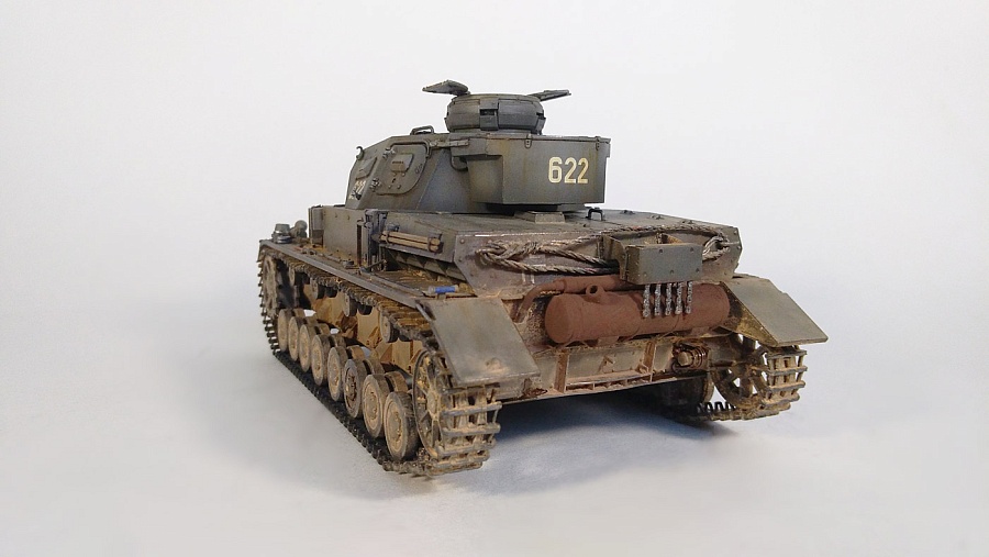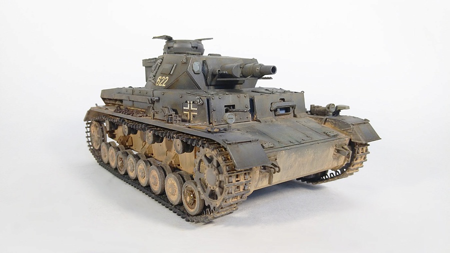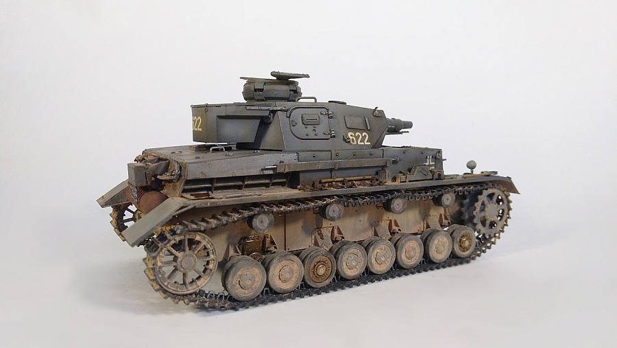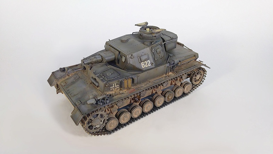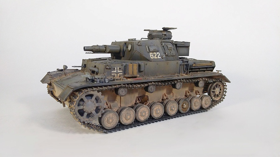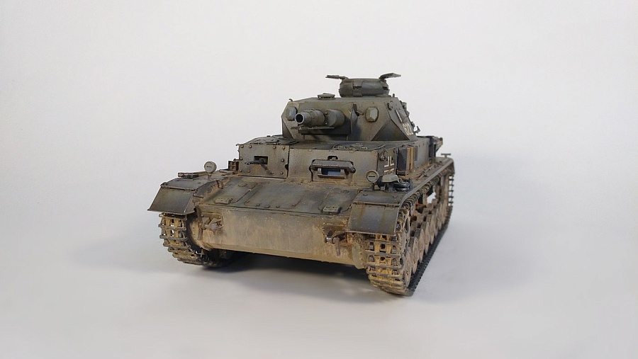 | Существует версия, что Pz IV изначально классифицировался немецкой стороной, как тяжёлый танк, однако документально она не подтверждена. Самый массовый танк вермахта: выпущено 8686 машин; серийно выпускался с 1937 по 1945 год в нескольких модификациях. Это из Википедии. А от себя могу сказать что Звезда в очередной раз порадовала отменным качеством модели, ни грамма шпаклевки. Собиралась быстро и приятно. Красил Тамиевскими красками, мешал цвета на глаз. Масло МИГ, смывка, фильтр, пигменты - Уайлдер. Немного лоханулся с глушителем, пришлось наложить толстый слой пигмента на уайт-спирите, потому и махровый вышел. Добавил трос металлический, предварительно его обжог. Вроде ничего больше и не скажешь, кидайте тапки, если заслужил :) |
