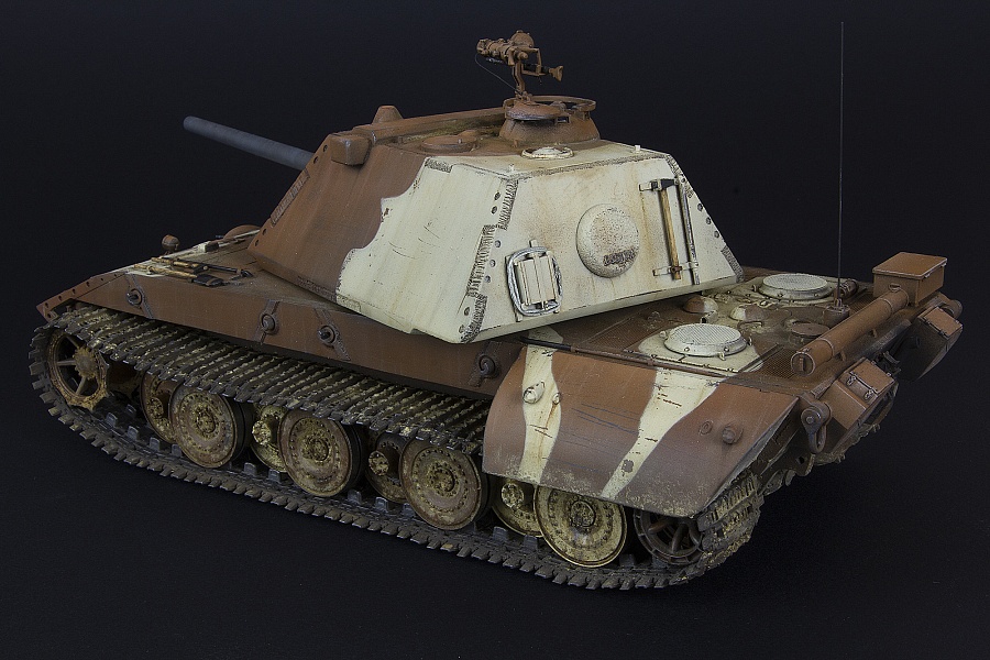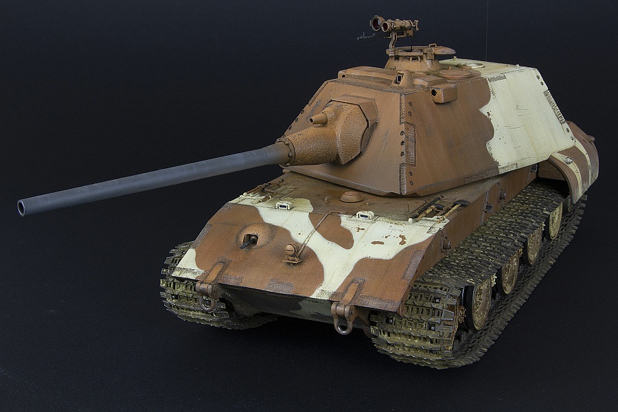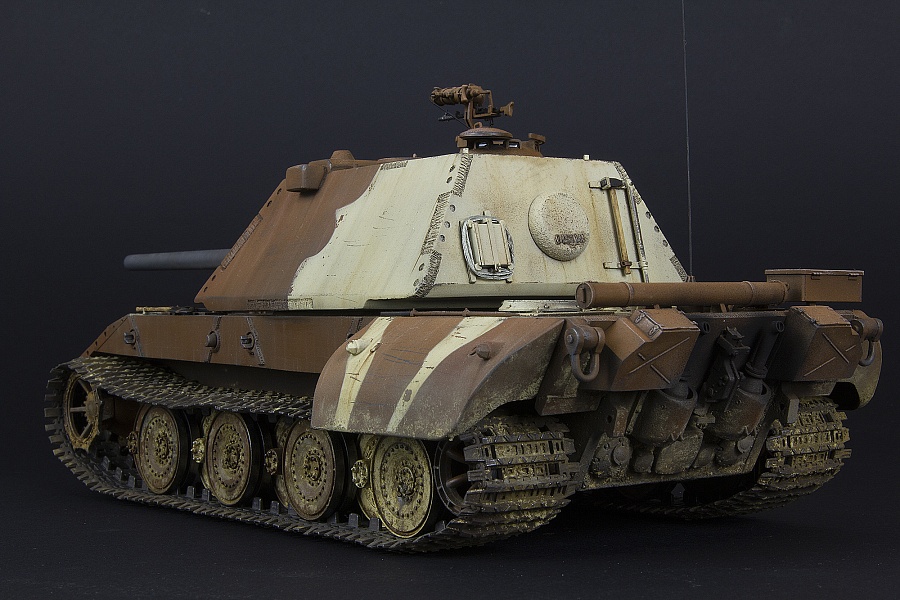 Всем привет! Наконец-то я его восстановил! Уфффф… (порядком надоел) Представляю вам Е-100 с башней Krupp на рассмотрение. По набору ничего не скажу – сами всё знаете, чего там не хватает, что есть, что можно улучшить. Когда-то уже выставлял этого «бегемота», полностью собранного из коробки, даже была попытка дополнить швами, но народу не понравилось, дескать, ничего необычного, «проходной» Е-100 получился. Как и любого творческого человека «закусило» слегка, отмыл. И пока отмывал, кучу всего попортил и поломал, поэтому решено было купить эту «башню-скворечник» Krupp. На то время не было набора от Amusing, посему нашел местную маленькую фирму, которая занимается отливом деталей, у них как раз была такая башня. А что? Круто! Купил и понеслась! Чем дополнил: