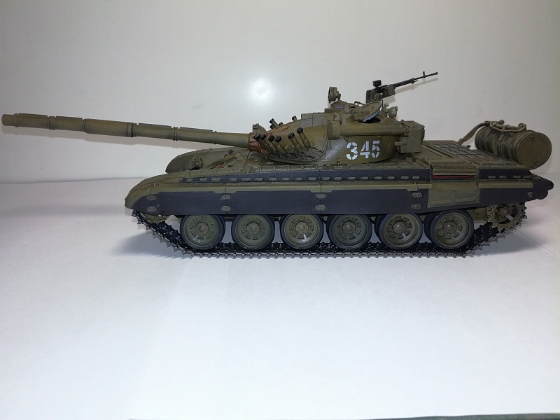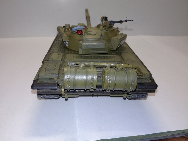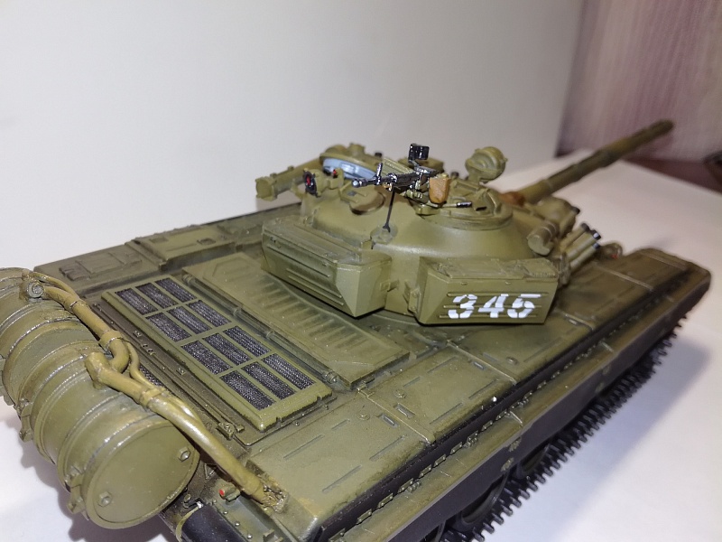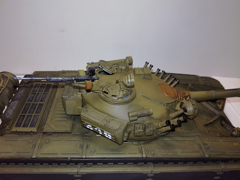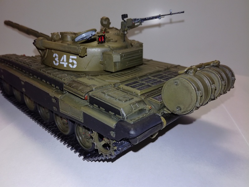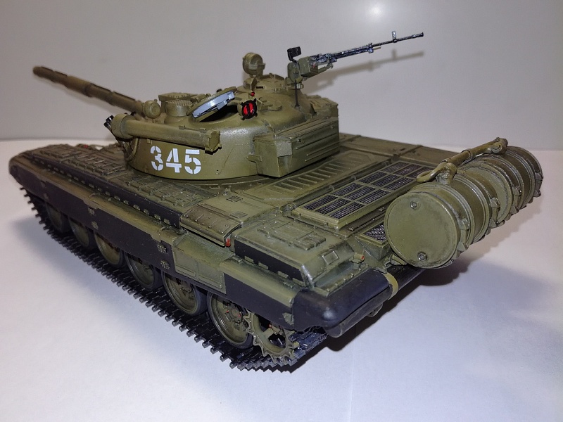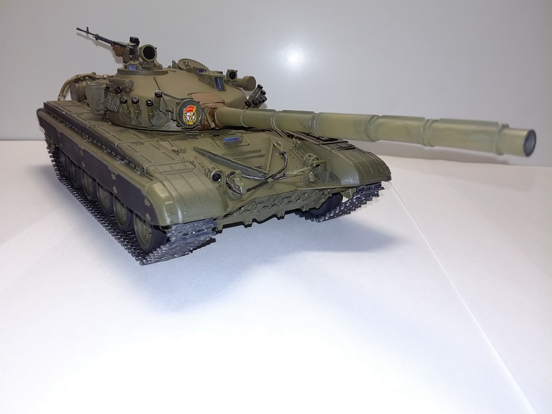 Добрый вечер друзья моделисты! По  просьбе своего товарища который служит в танковых войсках собрал танк Т-72А от фирмы "Звезда". Собирал практически с коробки, дополнение триплексы из ДВД диска, сплёл трос, на дополнительных баках трубка подачи топлива из проволоки, НА башне изменил проводку на дымовых завесах. красил красками фирма TAMIYA . Zip maket. лак фирмы TAMIYA и немного смывки.