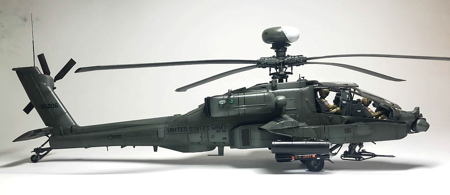 | Модель вертолета Apache AH-64D фирмы Хасегава.Сборка из коробки.Переделаны очистители стекол и поручни из проволоки.Краска от АК. | |
