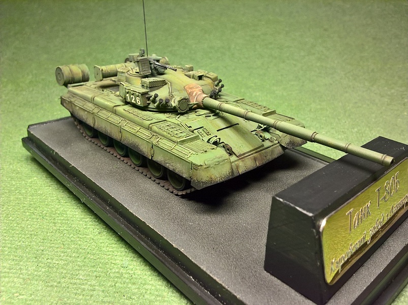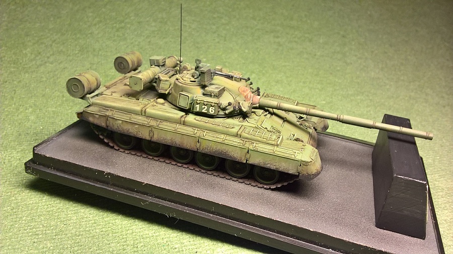| Приветствую. Разрешите представить Вам,Уважаемые коллеги очередную модель. На этот раз это Т-80Б от Modelcollect.Собирал по просьбе Мамы,в качестве сувенира на юбилей друга семьи. Набор вызвал двоякое чувство,с одной стороны хорошее качество деталей,отсутствие следов толкателей,утяжин и т.д.,с другой стороны,непродуманность мест стыковки навесного оборудования,т.е. отсутствие посадочных отверстий на башне ящики,корзину,и т.д. Также не понравилась процедура стыковки верхней части корпуса к ванне,т.к.,позиционировать пришлось на глаз,из за отсутствия центрующих элементов.Хотя может эти проблемы возникли из за моей криворукости. Также из за криворукости башня дап раза падала со шкафа,поэтому навеску приклеивал несколько раз. А так набор хорош. Набор собирался из коробки,практически без доработок. Прототипов никаких не придерживался. Окраска акрилом от АК,набор "Современная Российская БТТ".Применены также самодельные фильтры и смывка также от АК. Ну а результат на фото. С уважением. |