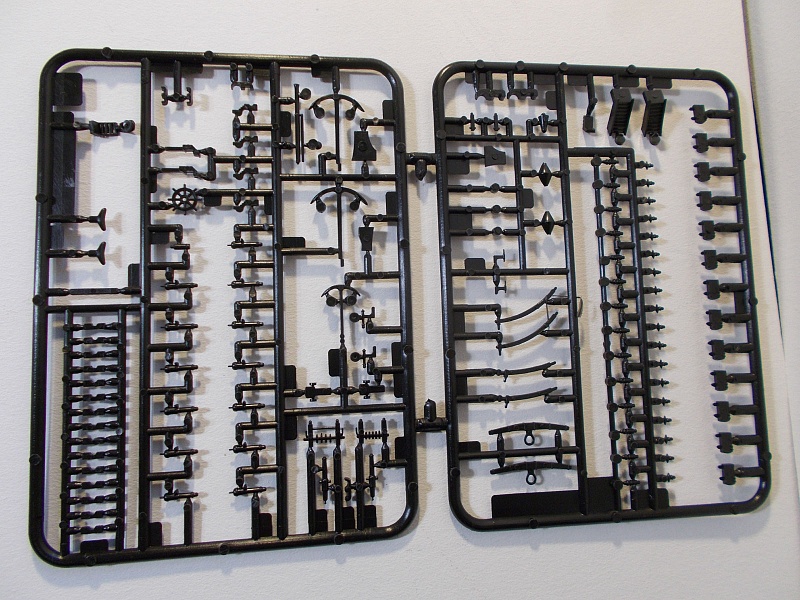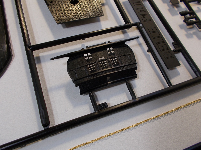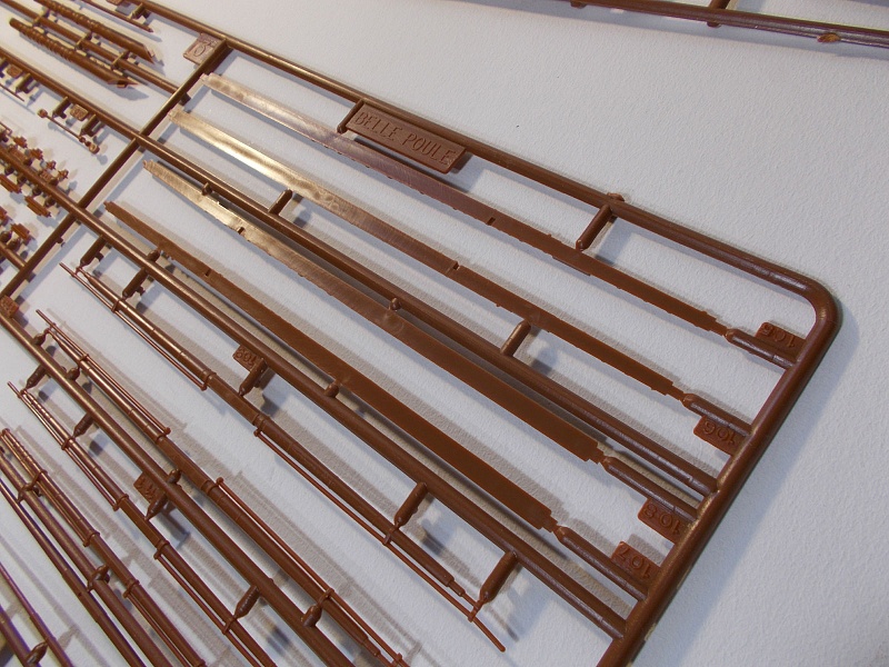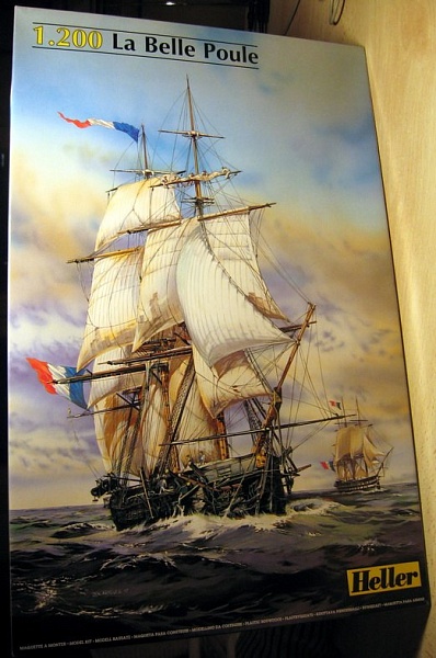 | "La Belle Poule": 60-ти пушечный фрегат 1-ого ранга, класса Surveillante.(в серии построено 9 кораблей). Данный класс фрегатов был разработан с оглядкой на американскую USS "Constitution". Название, которое переводится приблизительно, как "Прекрасная Цыпа", фрегат получил в честь Поль де Вижье, баронессы Фонтервиль, однако более игривое написание унаследовал от другой, очень известной La Belle Poule 1765 года, в одночасье начавшей войну между Францией и Англией. (Вообще, это название кораблей считалось в королевской Франции очень счастливым). Краткая биография Заложен в 1828 году, однако достроен лишь в 1834. Строился на закрытых верфях в Шербурге, что в то время было в новинку, и позволяло отложить окончание строительства в мирное время. Флагман Франсуа Орлеанского, принца де Жуанвиль. Наиболее известен, как корабль, на котором в 1840 г. вернули останки Наполеона с о.Св.Елены. По этому случаю, фрегат был полностью выкрашен в черный цвет, и оставался в такой окраске до конца своей карьеры. В 1841 году ходил в Нью-Йорк с дипломатическим визитом принца де Жуанвиль. Летом 1844 году, участвовал в войне у берегов Марокко и Алжира. Оттуда фрегат ушел на Мадагаскар и позже вернулся в Брест. Принимал участие в Крымской войне, в основном, как транспорт. Комиссован 19 марта 1861 года. Использовался, как пороховой склад. Разобран в 1888 году. Модель разработана компанией Heller совместно с IMAI в конце 1970-ых годов. В продажу поступила лишь первая, небольшая, серия. Набор был выпущен слишком поспешно и считается не очень удачным. Заявлен масштаб 1/200. Реальный масштаб 1/196. Коробка - из картона как у "Звезды". Картон уже немного размяк, но держится. Модель до меня доехала без дополнительных упаковок. Особый шик - внутри пакетик, надутый воздухом еще тех времен. Захочу подышать чем-то из второй половины ХХ века - проткну аккуратно дырочку, и как коллекционный коньяк - употреблю Внутри - "волшебная" Хеллеровская инструкция, гарантийно-регистрационный талончик, еще одна "туалетная бумажка" с сигнальными флагами (национальные - на вакушках с парусами и их надо красить лапами), хеллеровская подставка, рамка для вант. Ниток нет никаких. НО! В набор вложена цепочка для якорей, достаточно длинная, хотя хотелось бы - еще длинней. Корпус/Палубы - на большом литнике, разломанном пополам, что бы влез в коробку. Их черный пластик, жесткий и "сухой". Очень четкие грани, там, где есть мелкая детализация, она очень приятно выглядит, не замылено (вот тут IMAI-то и работало, видать) Древесная фактура - это хорошо, но она здесь излишняя. Аналогично - медная обшивка без гвоздевания (черепица какая-то). На палубе расшивка досок совсем уж не в масштабе. А на бортах ее нет (и слава богу!). Ширина досок на палубе - чудовищно не в масштабе: это просто аэродромные бетонные плиты какие-то! На всех мелких деталях корпуса - красивая, но грубая древесная структура. Хотя в целом - всё это приятно смотрится. На корме очень плохо проработаны оконные переплет - как у Огонька. Надо переделывать. Пушки, якоря Маленькие черные литнички - другие. Хреновые, мягко говоря. А там - пушки! "Мыло", облой, натеки-затеки-подтеки. В общем - это из тех 50% набора, что "не удалось". Лафеты у пушек - сборные. Для 1/200 - это очень "весело". Будь качество и детализация пушек повыше - было бы интересно, но так как есть... Рангоут, лодки, украшения На литниках из коричневого пластика отлиты мачты, мал