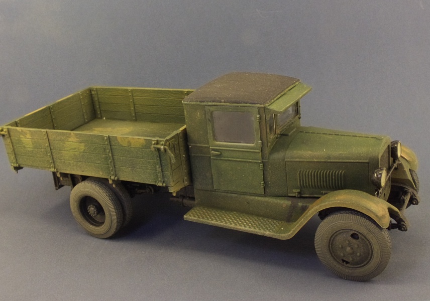 | ЗИС-5 от АРК, с добавлением колес от MiniArt. Модель древняя и всем наверное известная. Облой, утяжины и прочие радости присутствуют в полном объеме. В матчасти не разбираюсь, поэтому наверняка есть всевозможные косяки, например я так и не нашел где у этого грузовика бензобак. Видимо уже в то время у СССР были грузовики на фотонной тяге. Хотелось поэксперементировать с ржавчиной, обдирами и прочими радостями, но получилось как-то не убедительно. Самое радостное в этой модели - это колеса от MiniArt, они мне очень понравились. Декали не делал потому что... не захотелось ) |