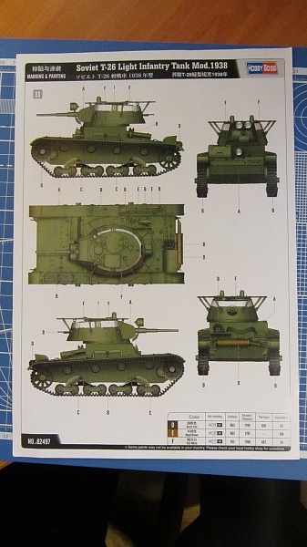 | Здравствуйте коллеги моделисты! Пишу первый свой обзор модели. Представляю Вашему вниманию модель танка Т-26 от фирмы HobbyBoss образца 1938 года. Модель поставляется в стандартной картонной коробке. В коробке находится 13 литников для сборки танка, ванна корпуса, набор траков с пальцами для сборки гусениц, 2 литника со стеклами для фар, две платы фототравления, декаль, образцы окраски, инструкция и рекламный листок. Модель по качеству отличная, как и все из семейства Т-26 этой фирмы. Купил в интернет магазине за 1300р |