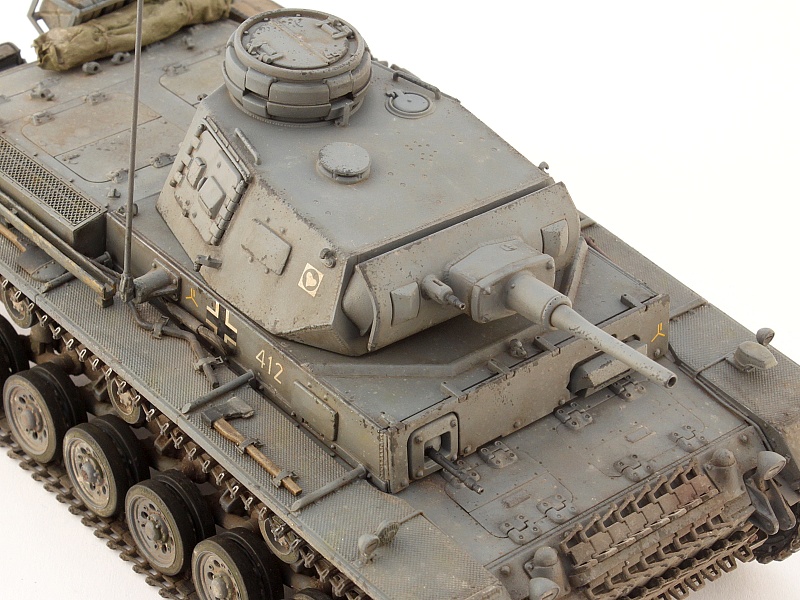 Хорошая Дрэгоновская модель, типичная для начала 2000-х. В комплекте идет два варианта ходовой (но, к сожалению, траки даны только на позднюю) и небольшая плата травления. Модель мне досталась по случаю, так что афтермаркет на неё не закупался, сборка практически искоробочная. Я только добавил немного самодельных деталей на шанец и академовские канистры на корму. Модель окрашена акрилом Tamiya, тонирована отечественными пигментами, художественным маслом и карандашами.