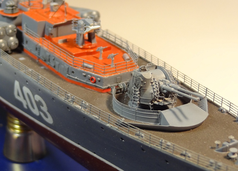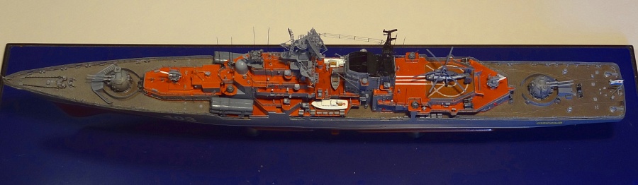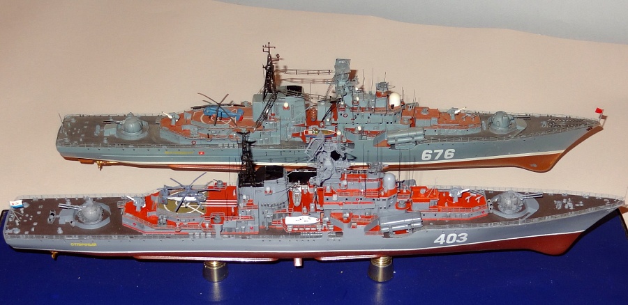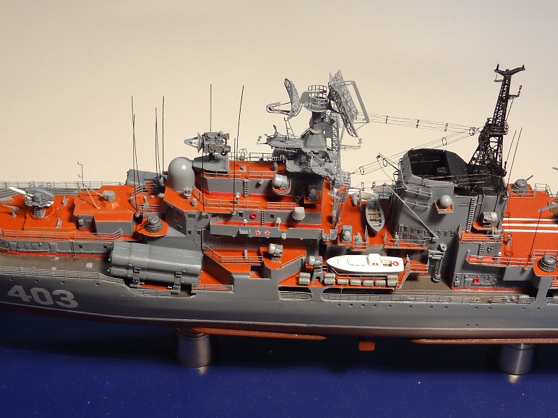 | Прототип: Эскадренные миноносцы проекта 956 — Википедия Использовались наборы Микродизайн № МД 350204 (Фототравление) Цепь - Master Tools № 06624 Nord Star NS 350152 RBU 1000 реактивно-бомбометная установка (смола + травление) Nord Star NSA 350159 30мм ЗАУ 630 мм (смола + стволы) Veteran models AK 130 VTM35071 корабельная пушка 130 мм (смола + травление) Veteran models MR 184 VTM35072 радар (смола + травление) Возможно еще какие то дополнения забыл указать. Доработана труба, убрал лишние иллюминаторы на левом борту и лишнее перо руля. Подкорректирована форма кормы. Переделал «струну» как сумел. Прорезаны отверстия в кнехтах. Окрашено акриловыми красками, тамия и хобби колор, винты – АК interactive суперметалик. Остекление -micro kristal klear За фото прошу не пинать. Без вспышки совсем не получалось несмотря на довольно мощную подсветку. | |