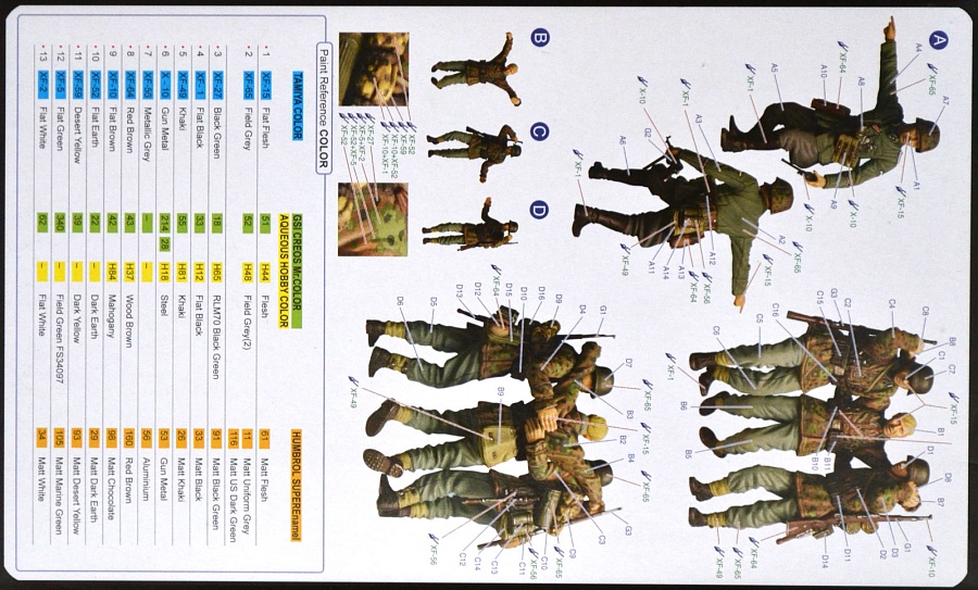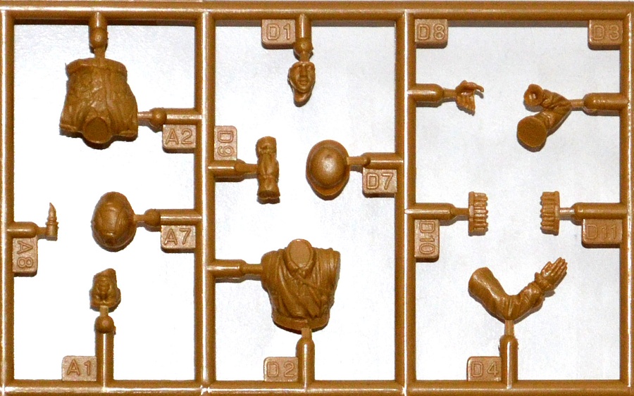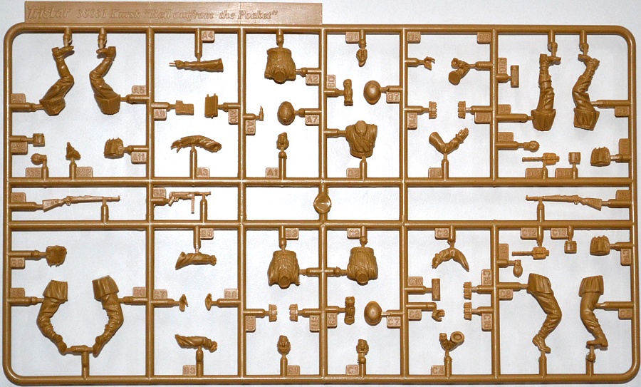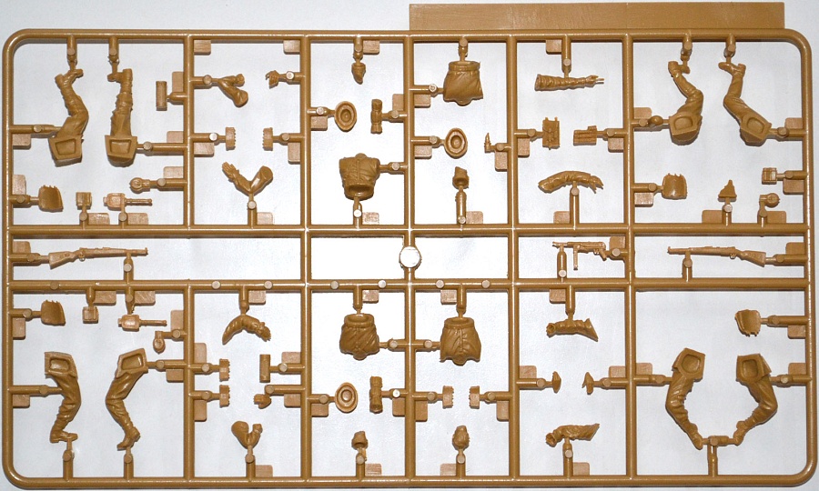| В цветной коробке находится один большой литник с фигурками четырех пехотинцев, вооружение, также на этом же литнике. Фигуры проработаны достаточно хорошо, как впрочем и вооружение! На литнике присутствует небольшой облой. Цветная инструкция напечатана на обратной стороне коробки. | |