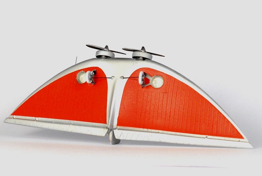 Сама модель изготовлена по традиционной для меня технологии – выпиливание из полистирольного пакета. Кабина целиком выдавлена из прозрачного пластика на деревянной оправке. В работе использовались инъекционные иглы и проволока. Провисание полотна «надуто» по маскам. Окраска лаки и краски Акан.
