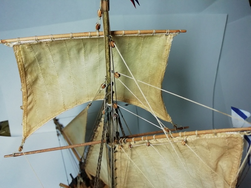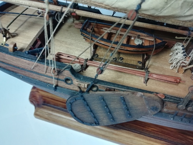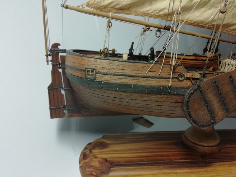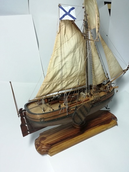 | Всем привет!!! хочу представить вашему вниманию свою версию известного бота. Собирал исключительно по инструкции, паруса были заменены на паруса от фирмы "Фальконет" , очень добротные по моему мнению. Нити тоже были заменены на канаты.Паруса окрашивал чаем,корпус покрывал льняным маслом с последующим покрытием лаком. шлюпку пришлось установить маленькую т.к. на данный момент другой не было (думаю общего впечатления она не испортила). Всем приятного просмотра. | |